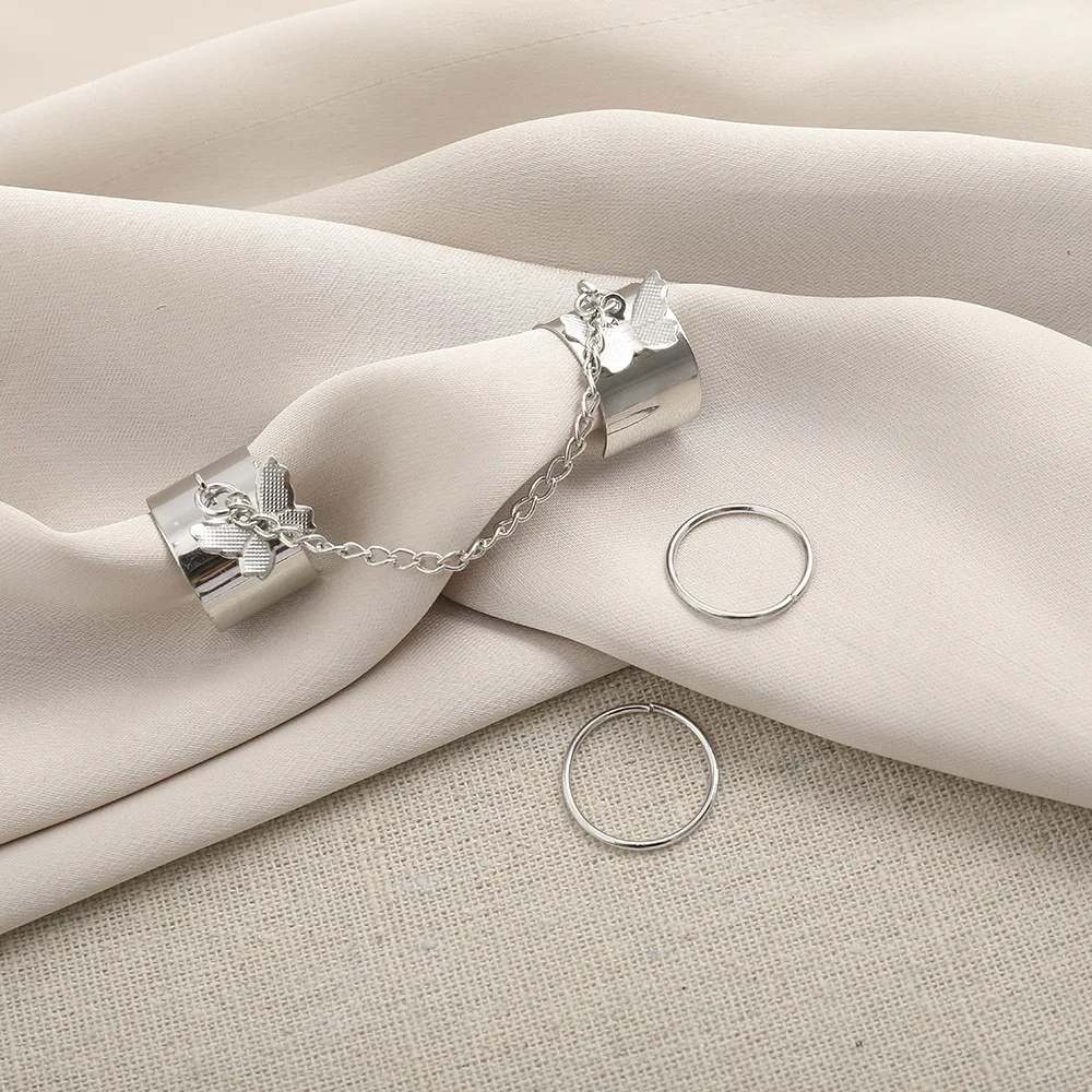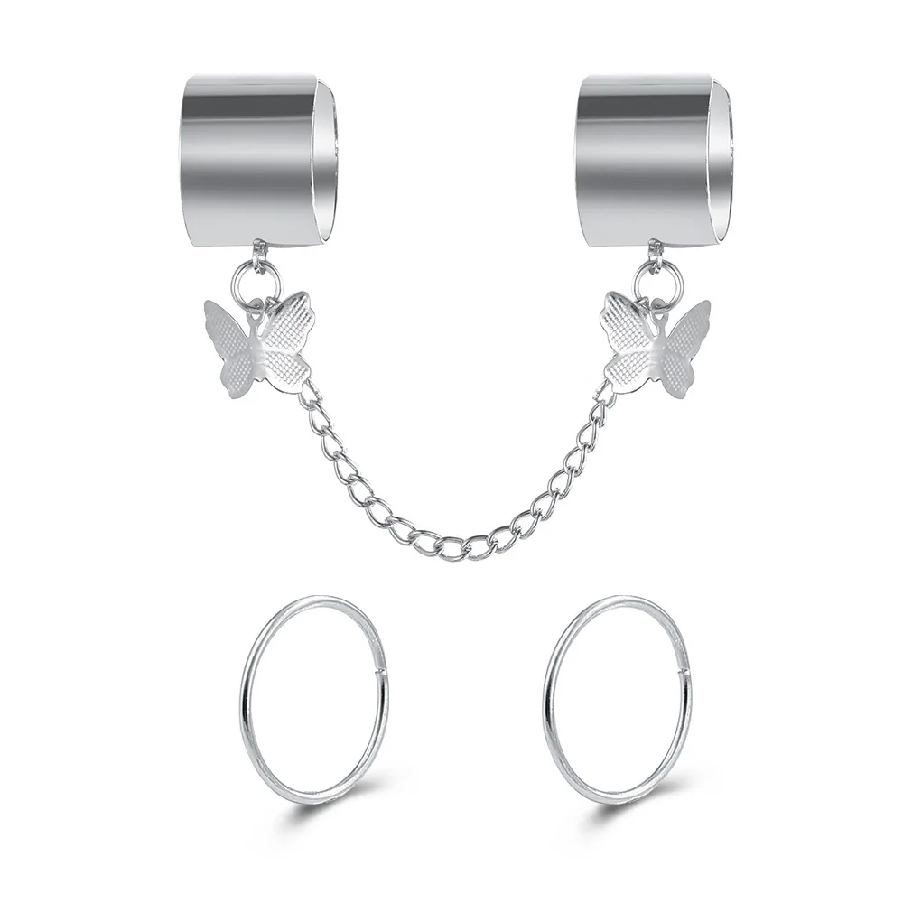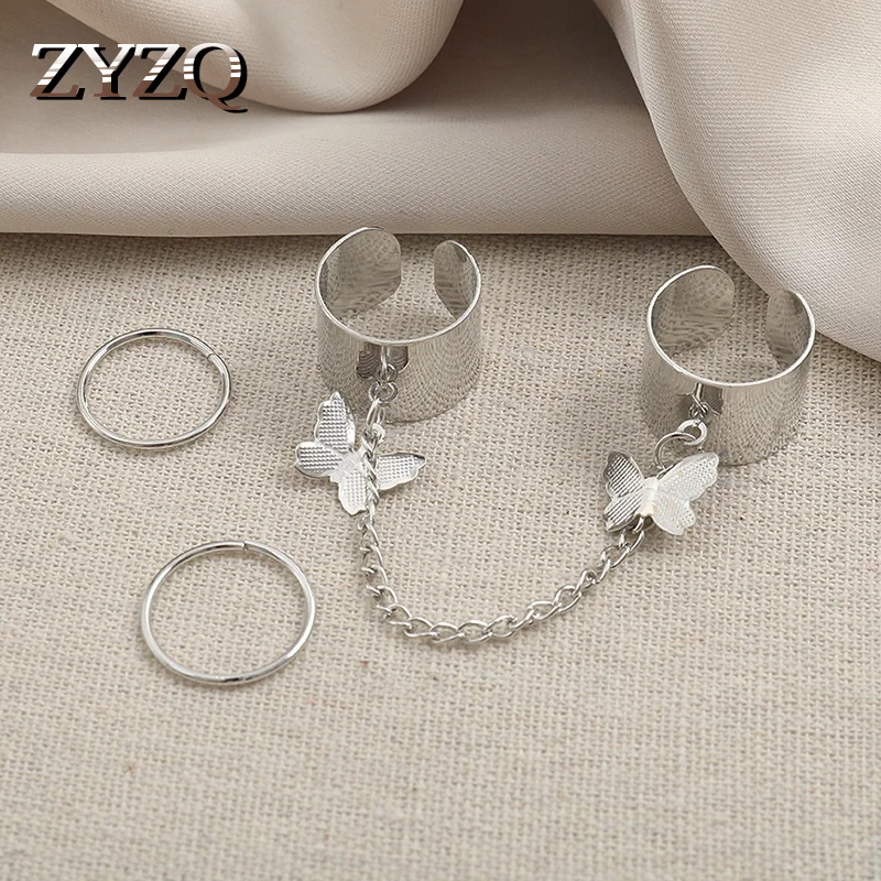 Личность Бабочка цепи кольца для женщин Винтаж блеск двойные кольца...