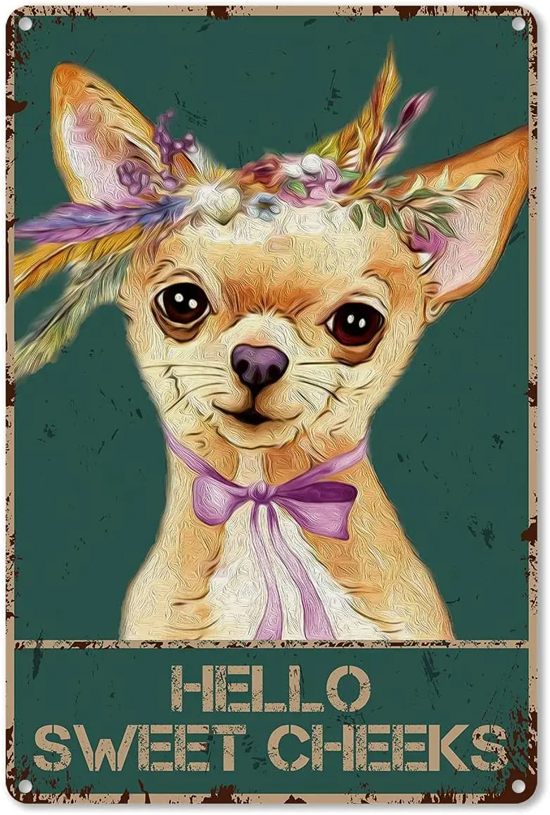 Винтажные Hello Sweet щеки Чихуахуа собака жестяной знак для ванной металлический жестяной знак Настенный декор туалет ванная комната