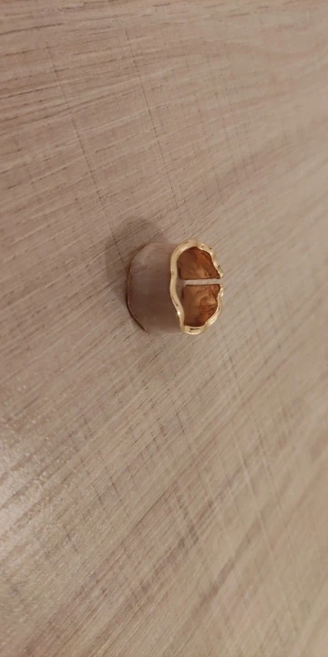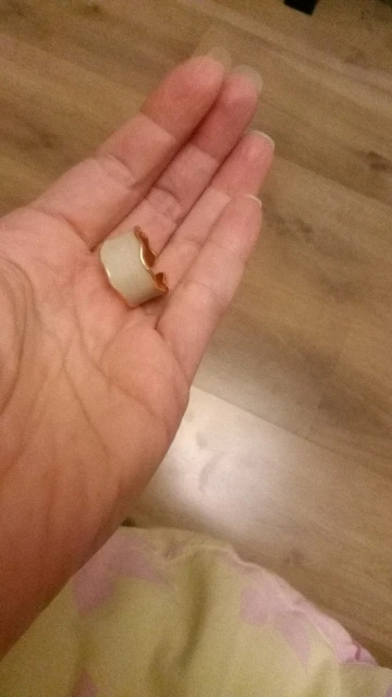 Интересно выглядит, но, наверное, следовало выбрать цвет поярче, это под определённым освещением сливается с кожей. Учтите, что оно не безразмерное. У него хоть и есть разрыв, но оно не растягивается)) Окружность около 6см. На поверхности есть неровности, вкрапления. Непонятно, так должно быть или брак, но, в принципе, всё равно не заметно. В подарок продавец положил симпатичные серьги-гвоздики.