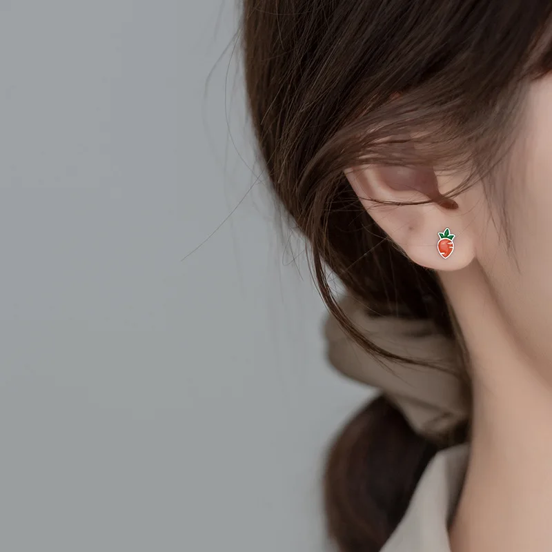 Женские асимметричные серьги из серебра пробы с кроликом и редисом