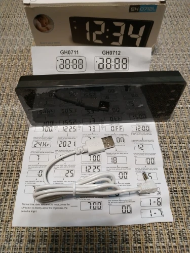 Часы работают. Свет яркий. От кабеля постоянно работают, а от батареек тухнут чере секунд 10 и необходимо нажать на любую кнопку чтоб загорелись. Если сверху была бы эта кнопка было бы покруче.