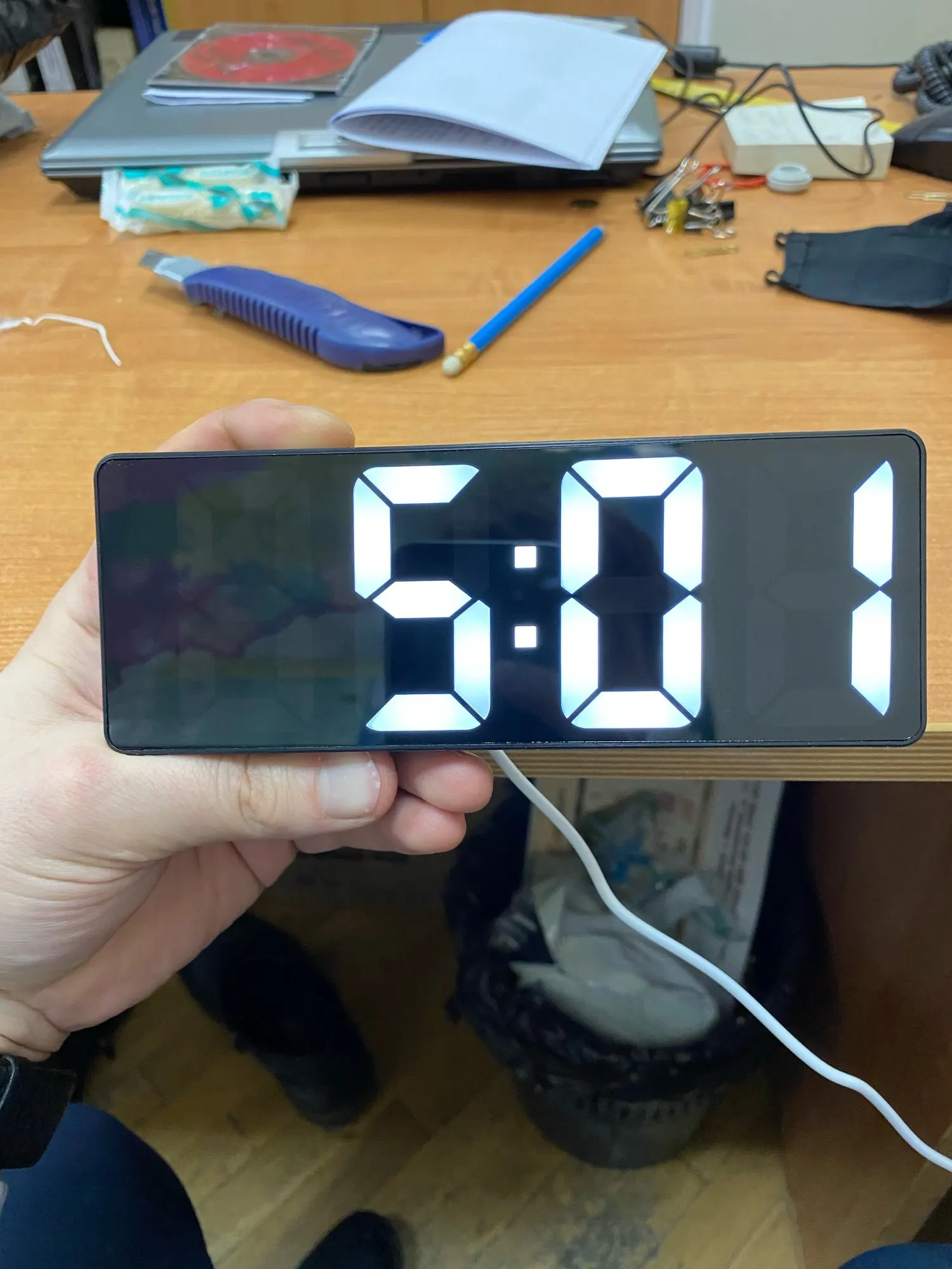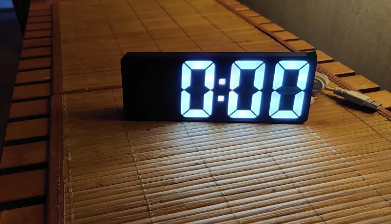 Работают от USB (подключил от телека), батарейки используются только для сохранения выставленных параметров. Если отключить от USB питания не будет, цифры погаснут. Подсветка цифр имеет 3 степени яркости, на минимуме вполне нормально видно в темноте.