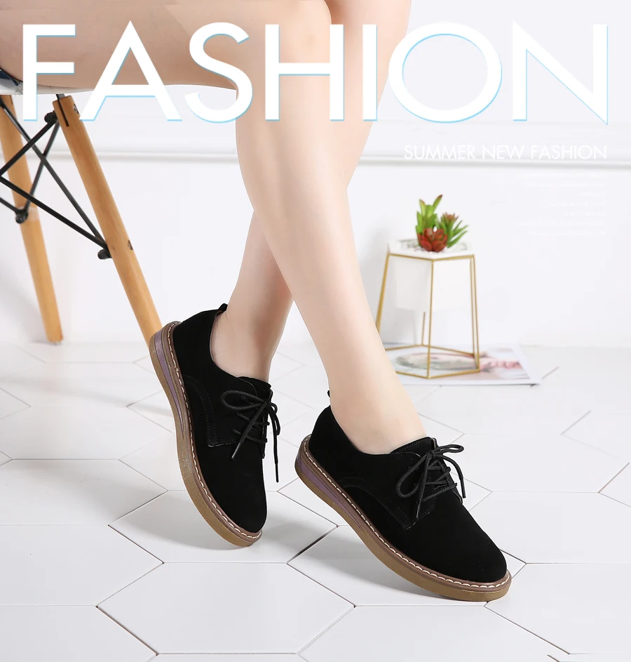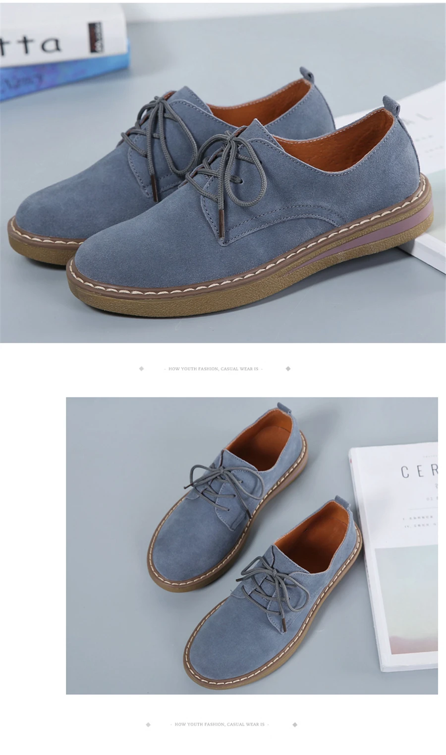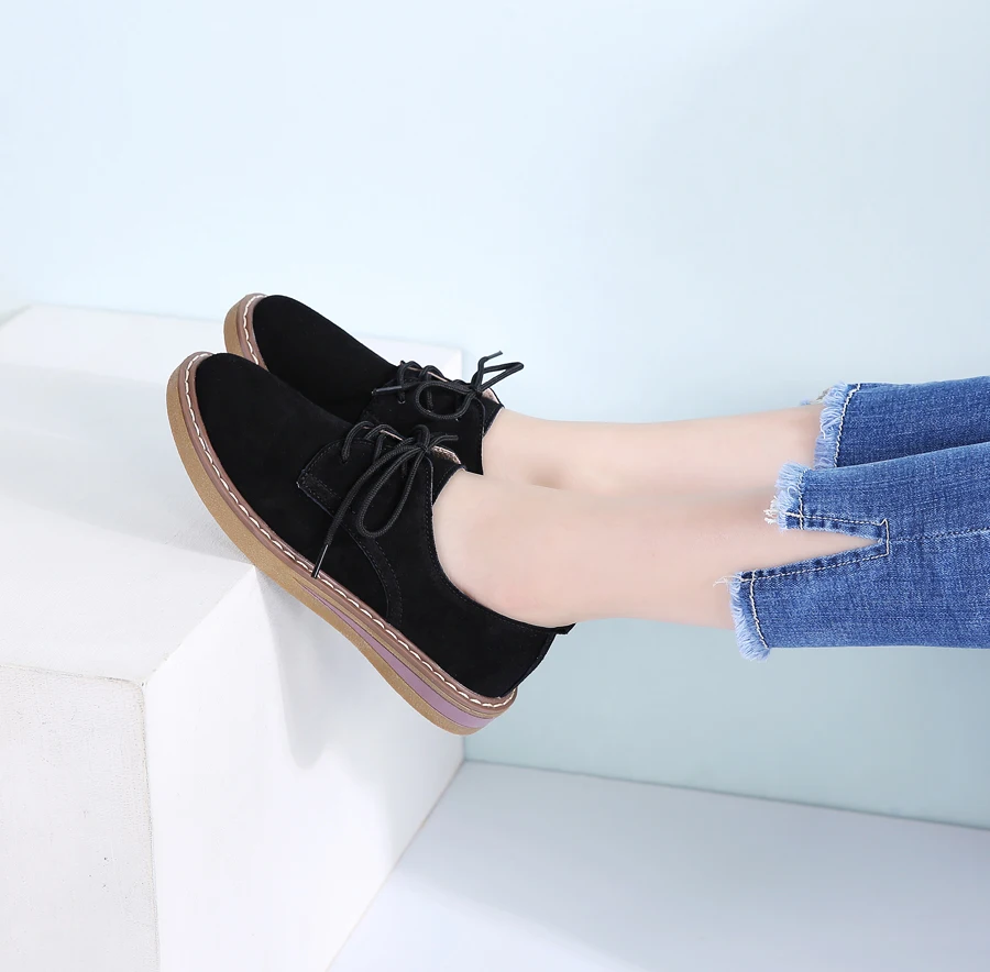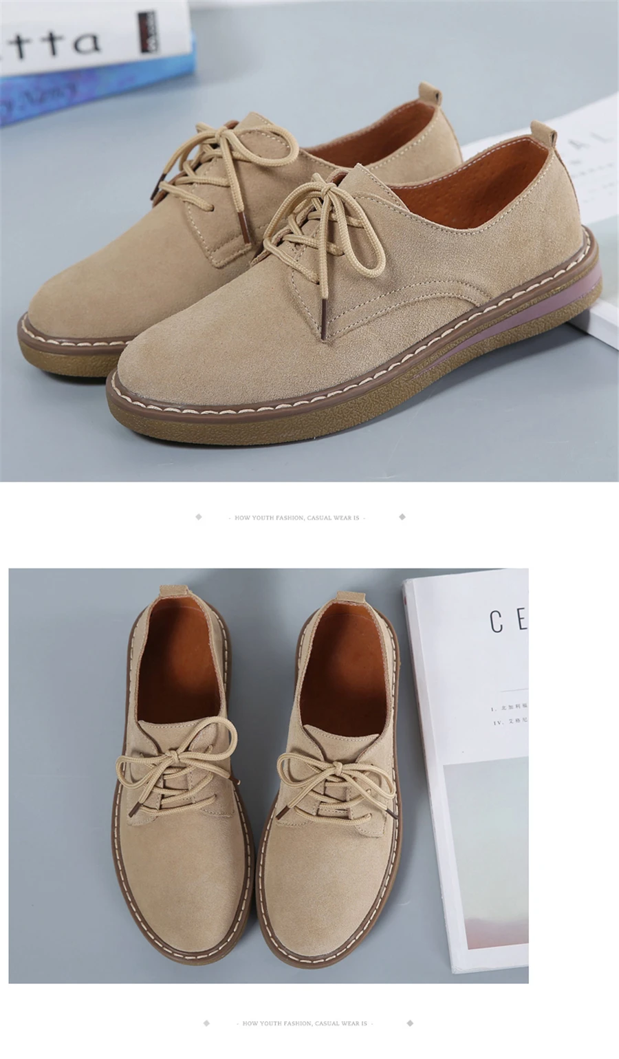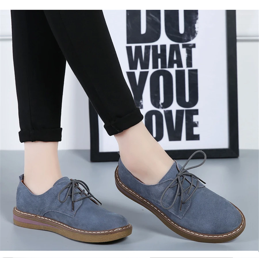 Женские мокасины на плоской подошве, Кожаные Замшевые туфли-лодочки со шнуровкой и круглым носком, оксфорды в стиле ретро, весна 2021