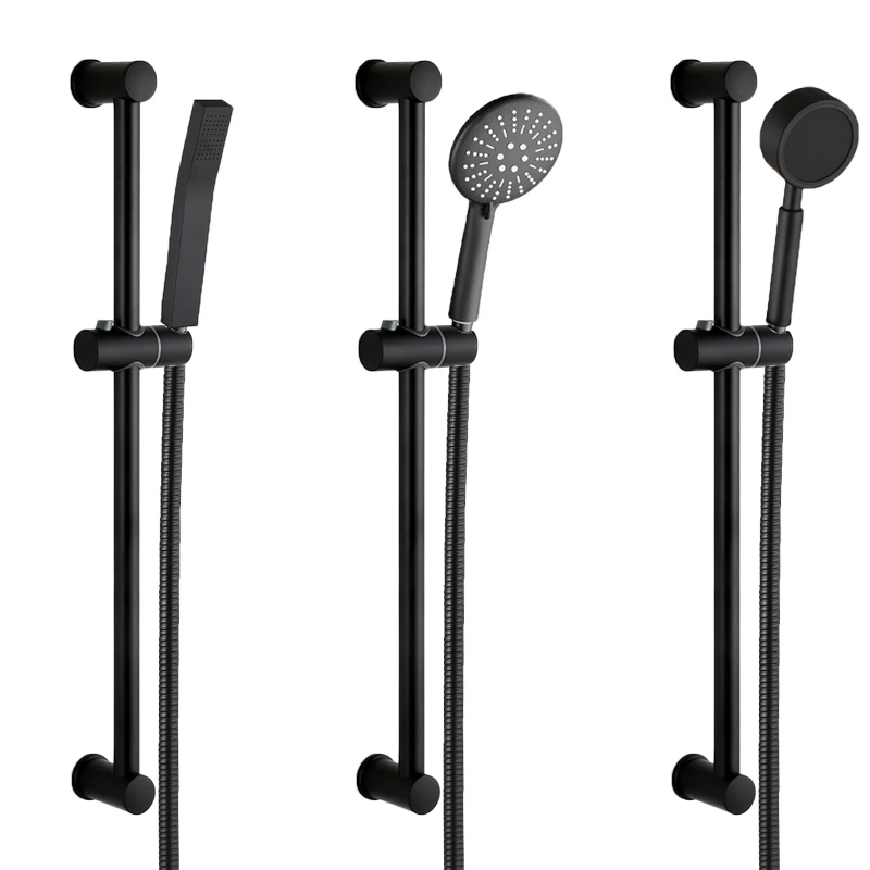 Настенный раздвижной стержень из нержавеющей стали черного цвета для ванной, настенный Регулируемый рельс, аксессуары для ванной комнаты, ручная душевая головка, стержень