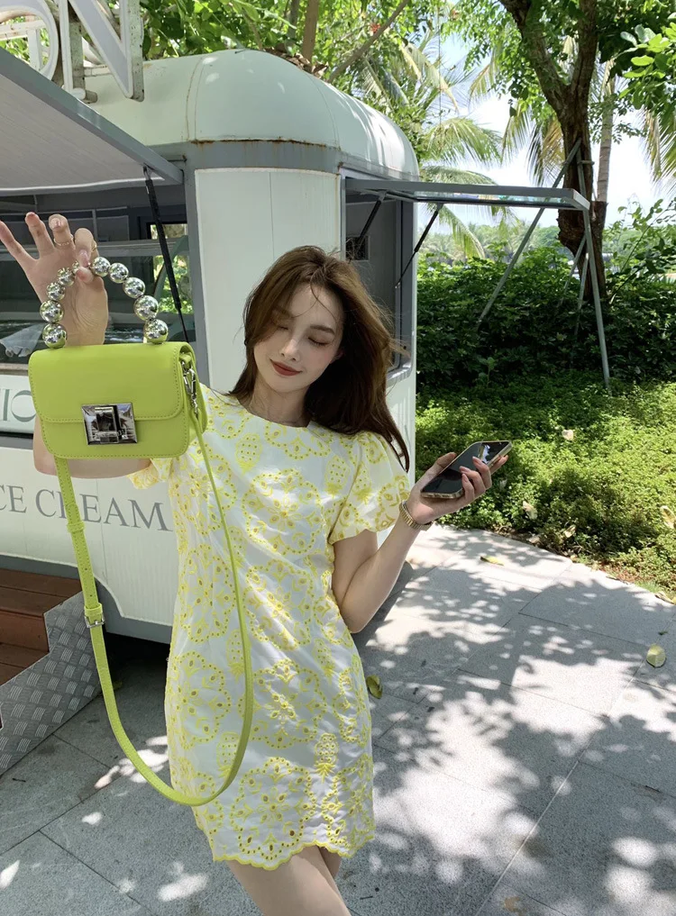 Дизайнерская сумка-тоут для женщин, маленькая милая сумочка-конверт с ручками из бисера, вечерний вечерние елек желтого, розового, белого цветов на ремне, мессенджер через плечо