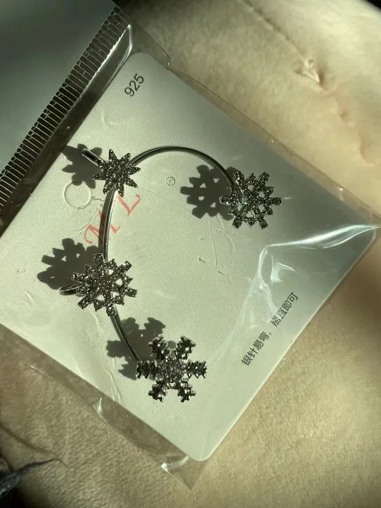 Серьги в виде снежинки Стразы геометрические клипсы аксессуары деко...