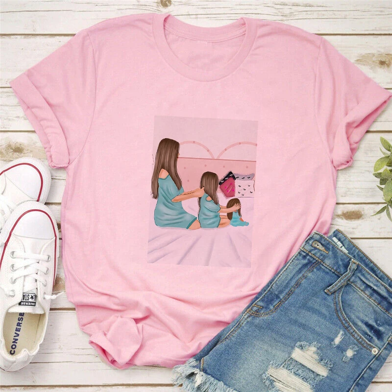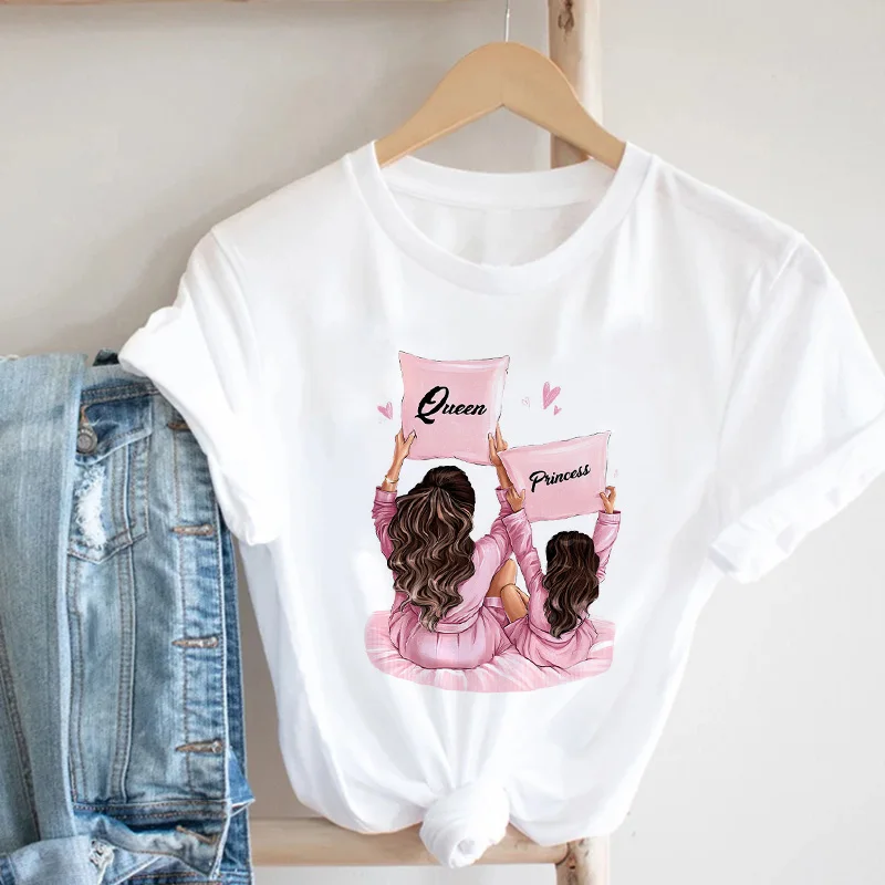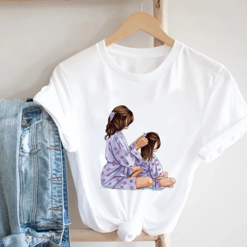 Футболка женская с принтом мамы и дочки, модный топ с графическим принтом, мультяшный рисунок, в стиле 90-х, летняя одежда, для мамы и дочки