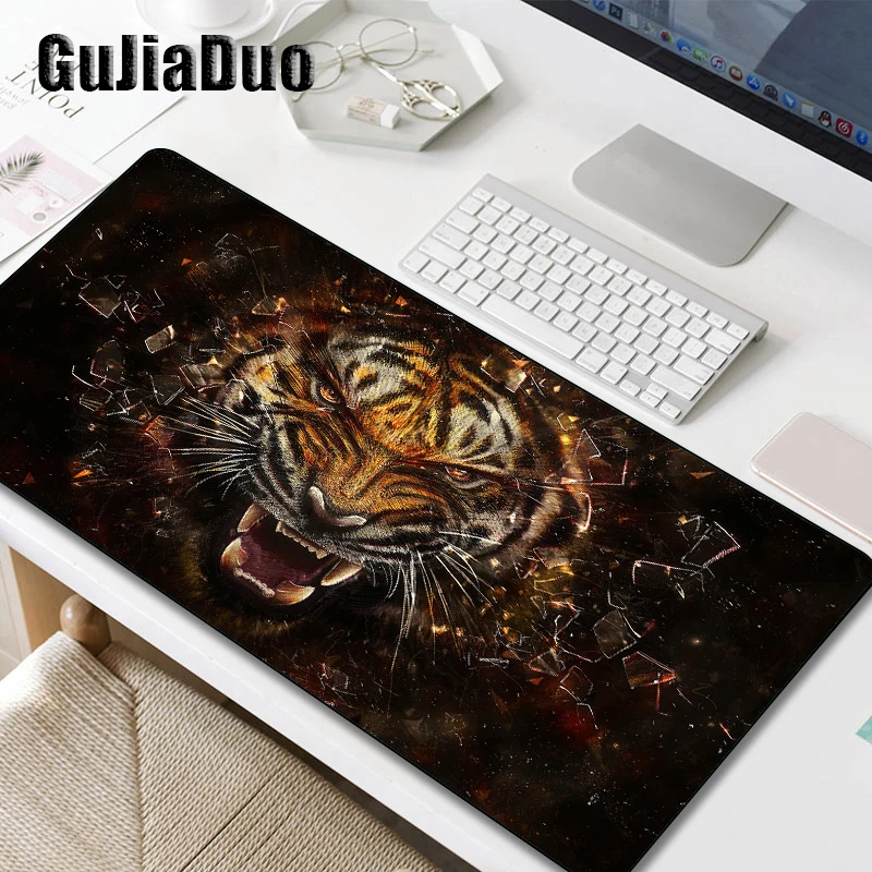 Очень большой коврик для мыши GuJiaDuo с тигровым узором, подушка для ноутбука и ПК 800x300 XL, натуральный каучук, нескользящий Настольный коврик, игровые аксессуары