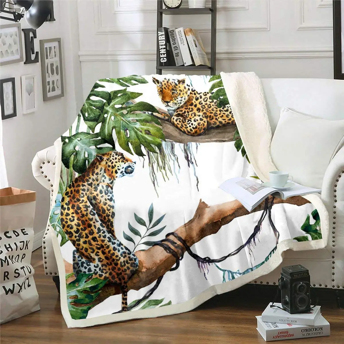 Одеяло из шерпы с двойным леопардом, Лежачее, сидячее на дереве, Африканское дикое животное, тропические пальмы, дождь, деревья, Флисовое одеяло,