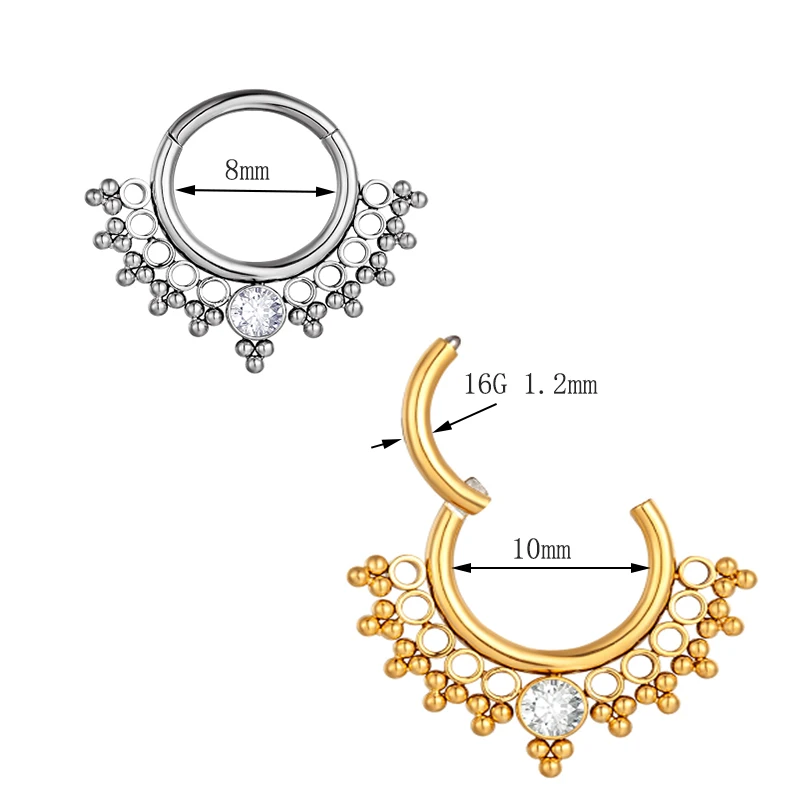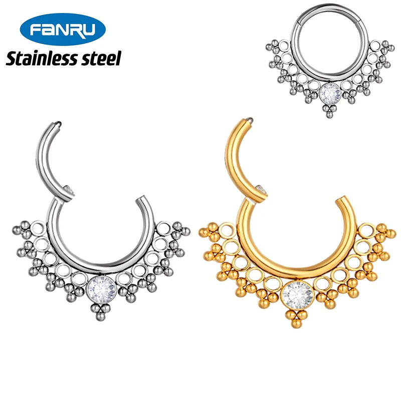 316L хирургический стальной нос кольцо Daith шарнирная перегородка пирсинг кольцо циркон бусины кликер хрящ Козелок Уха Пирсинг ювелирные изделия