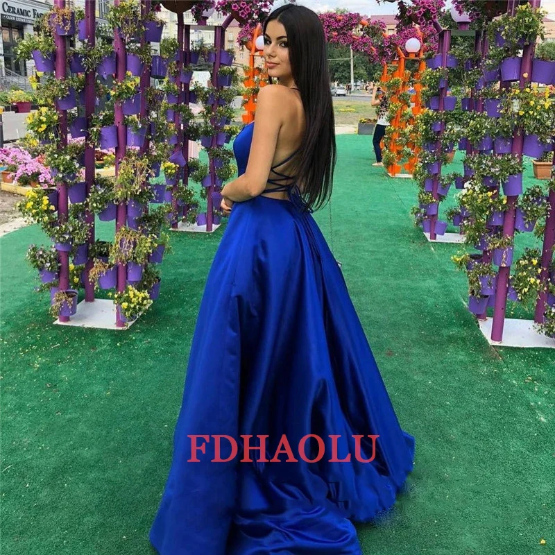 Женское вечернее платье с открытой спиной, длинное синее платье для выпускного вечера, 2022