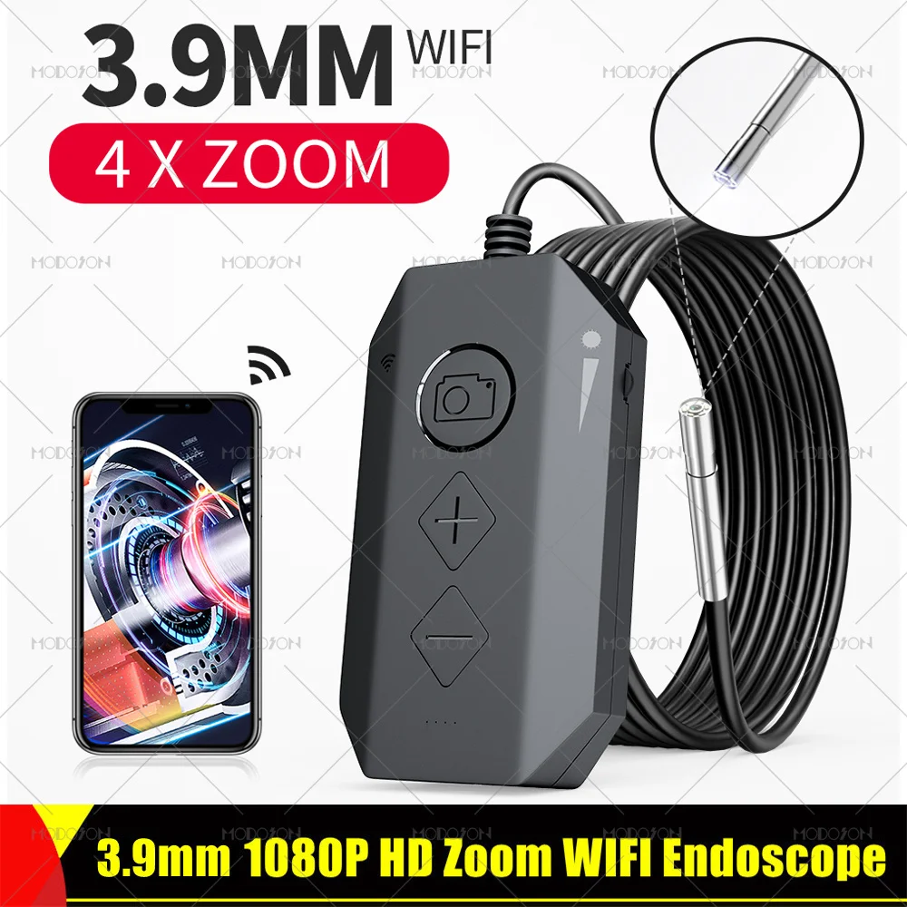 3,9 мм 1080P WI-FI HD эндоскоп Камера 4X зум 2600 мА/ч, змея кабель Видеоскоп промышленные эндоскопические инспекциионный бороскоп эндоскопии