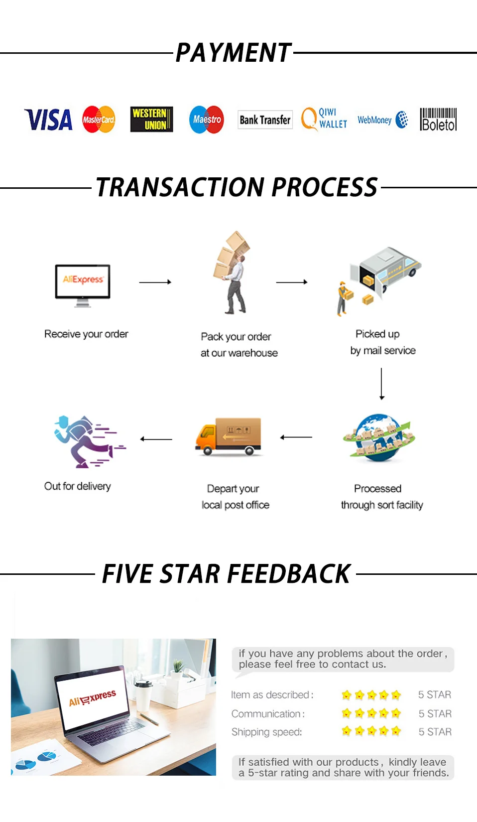 Если вы удовлетворены нашими продуктами и услугами, пожалуйста, уделите несколько секунд, чтобы оставить комментарий. (2). Пожалуйста, свяжитесь с нами, прежде чем оставлять нейтральные (3 звезды) или отрицательные (1-2 звезды) комментарии.