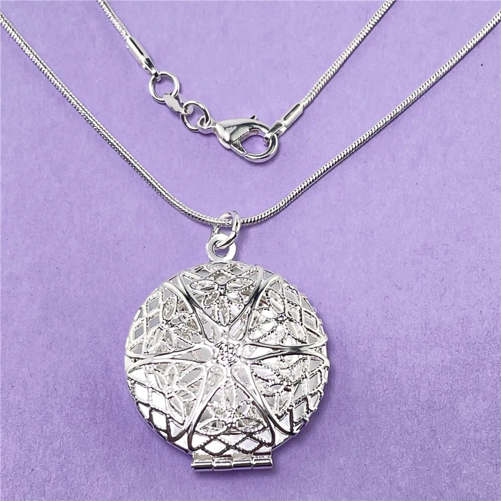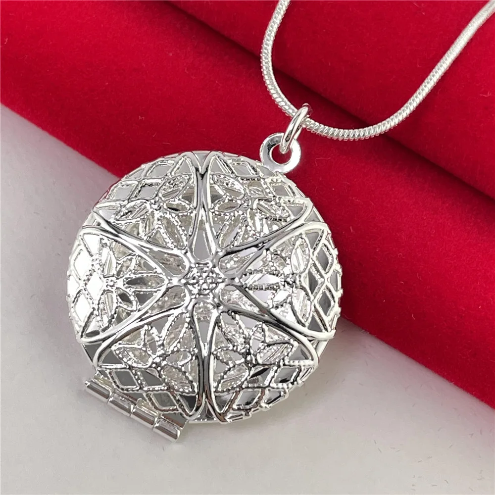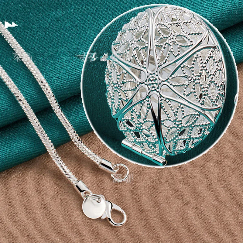 Ожерелье из серебра 925 пробы с кулоном-фоторамка, цепочка со змеиным плетением 18202224 дюйма для женщин, очаровательные свадебные модные украшения