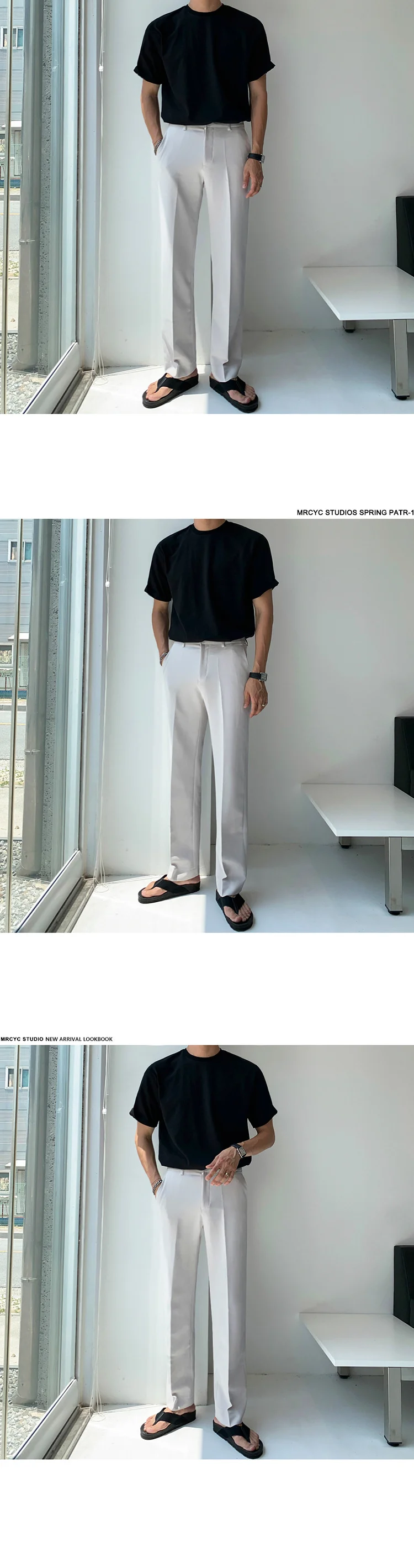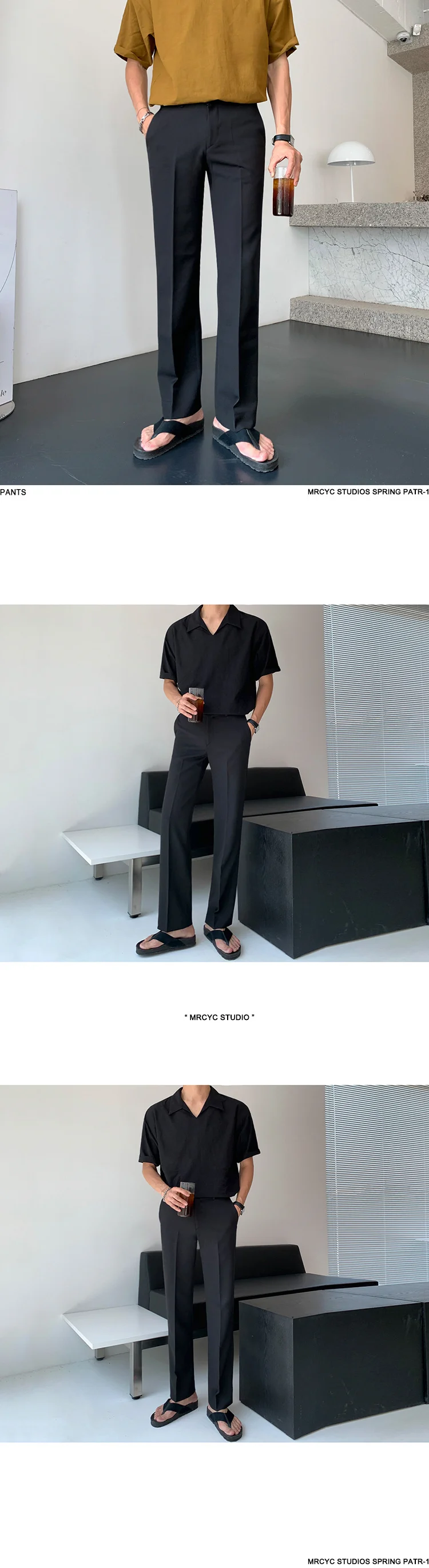Мужские деловые брюки, Новинка лета 2021, черные прямые Свободные корейские Костюмные брюки, базовые тонкие брюки 9Y7671