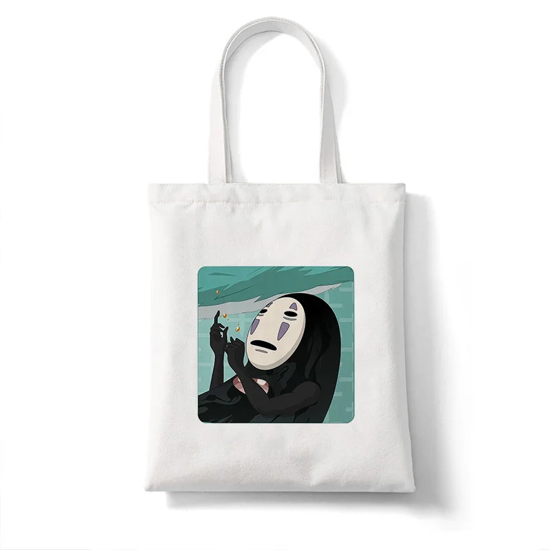 Хлопковая Сумка-тоут для шоппинга No Face для мужчин, эко-многоразовая эко-сумка для шоппинга в стиле аниме, из денима