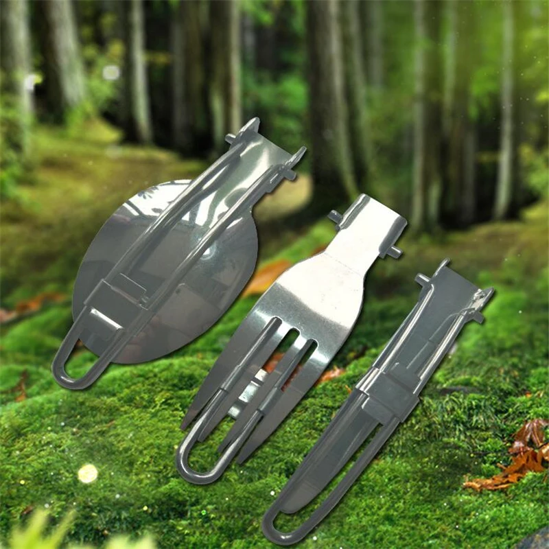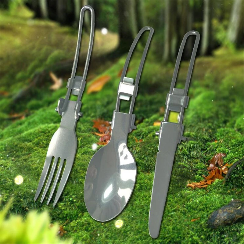 Портативный складной нож из нержавеющей стали набор ложка и вилка, ...