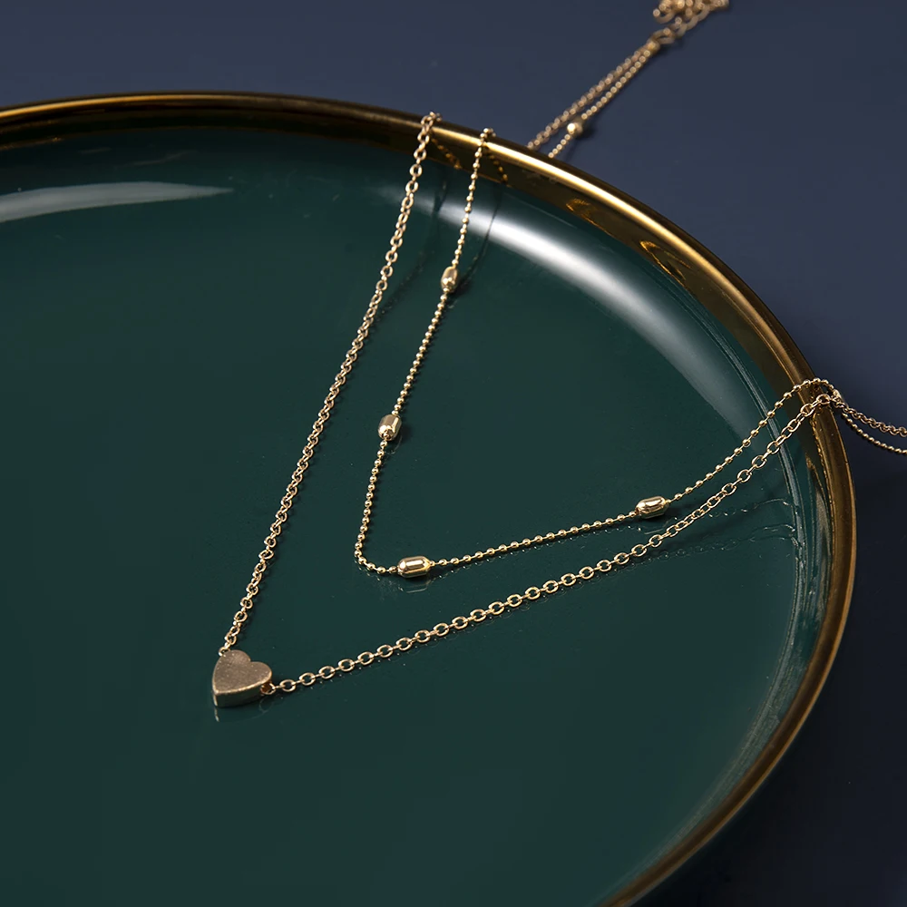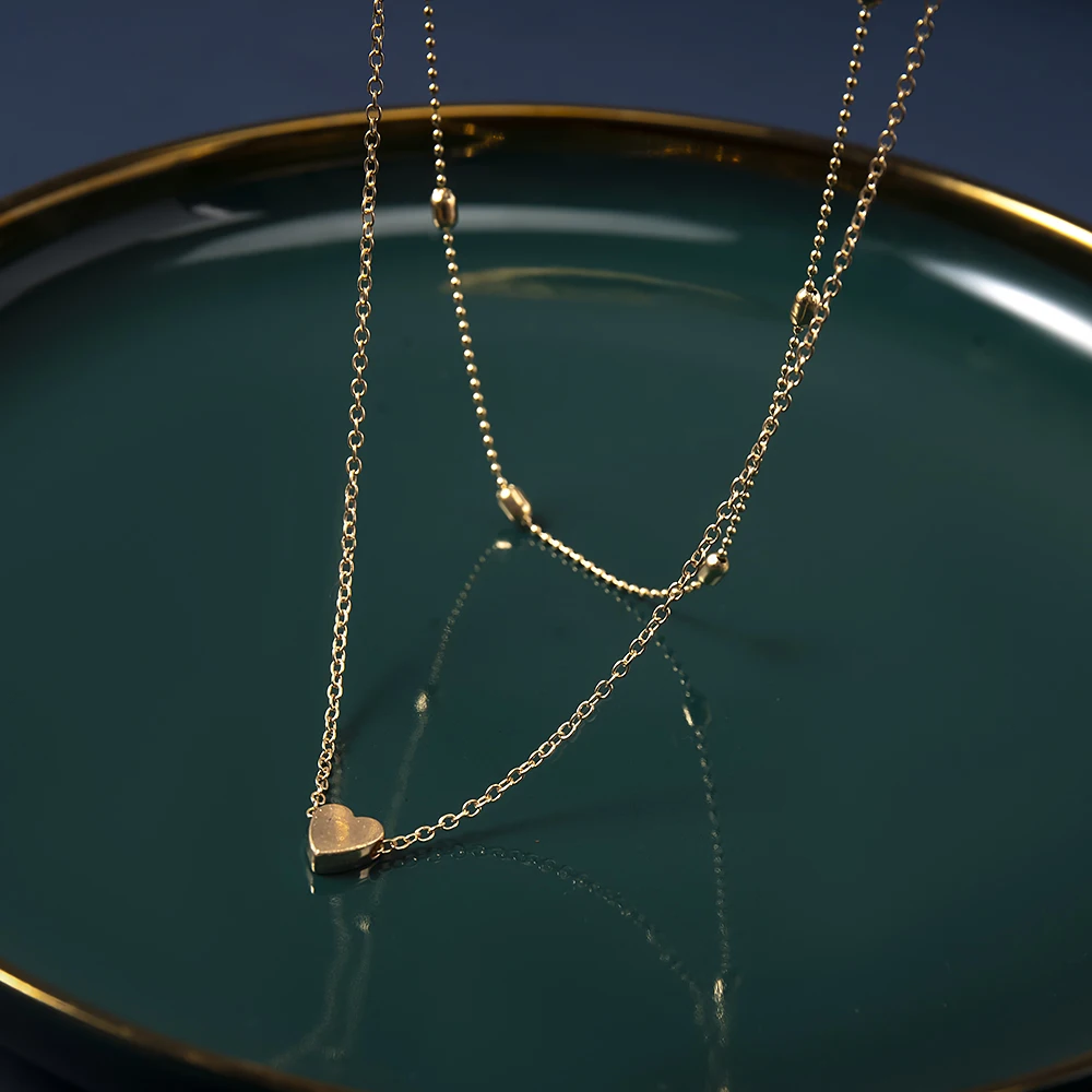 Колье женское многослойное с маленьким сердцем, чокер золотистого цвета, бриллиантовое ожерелье, Подарочная бижутерия