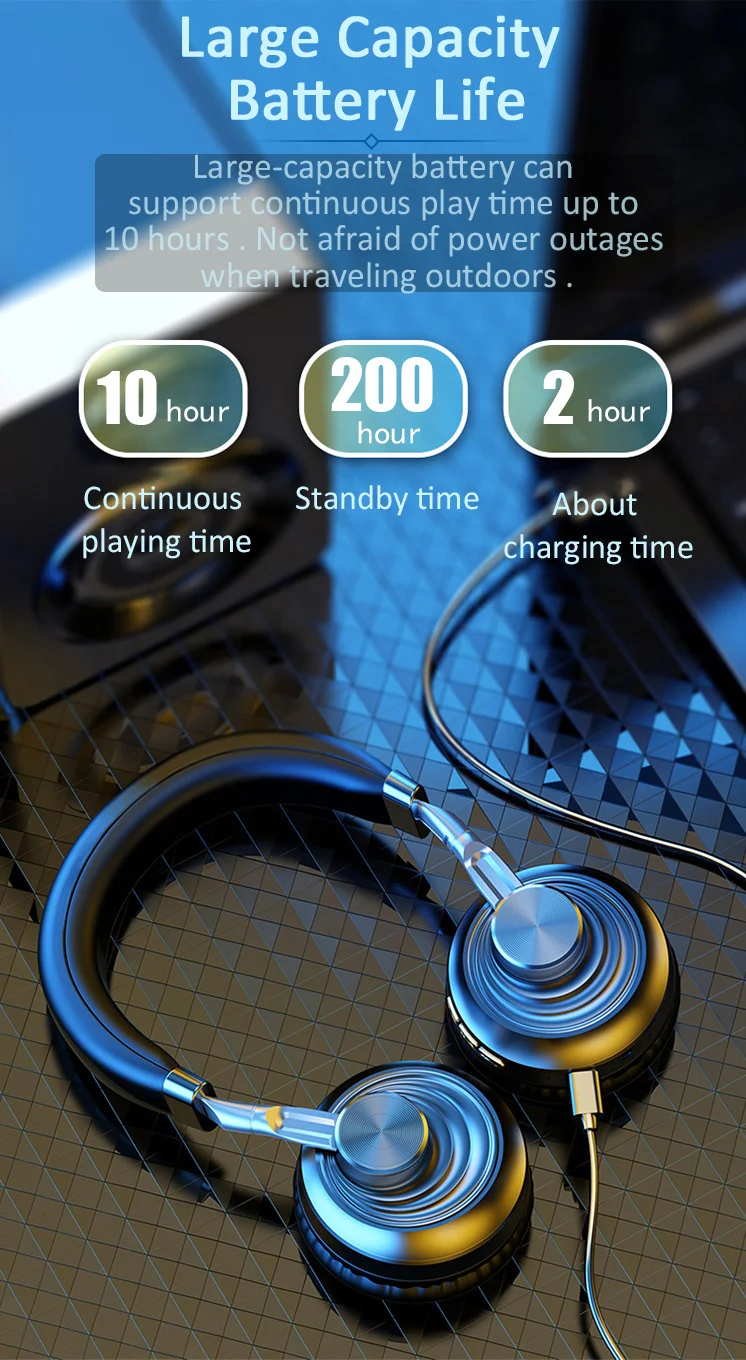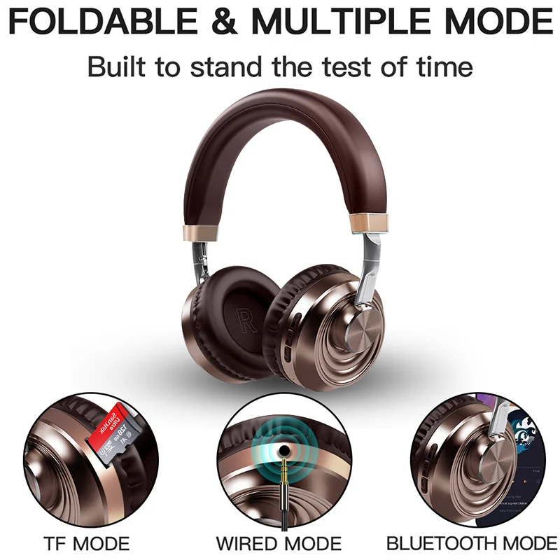 Беспроводная гарнитура Bluetooth 5,0, гарнитура, совместимая с SD-картой, стерео и микрофоном, музыкальная гарнитура, искусственная кожа, личная