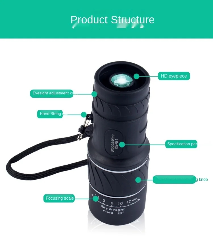 Монокуляр ночного видения HotHD16X52 для взрослых и детей, мощный большой окуляр для путешествий с низсветильник щением