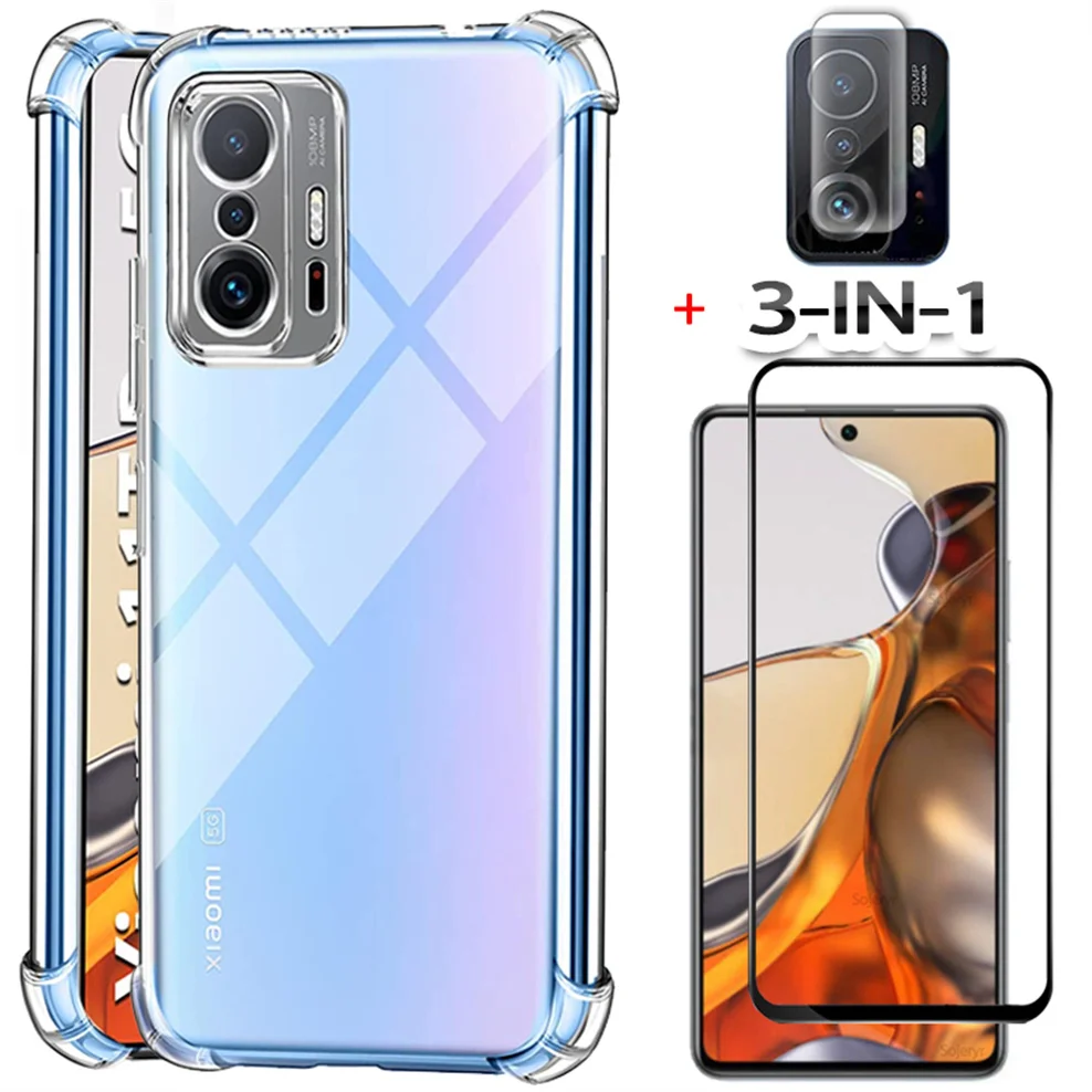3-в-1, чехол для xiaomi 11 t pro противоударный силиконовый чехол для мобильного телефона чехлы mi11t pro xiaomi 11 lite 5g ne стеклянная крышка xiaomi 11 t pro Чехол