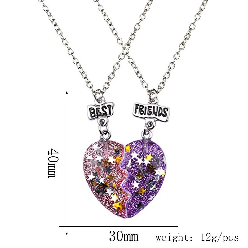Новый розовый синий блесток шить Heart breaker Ожерелье Лучшие друз...