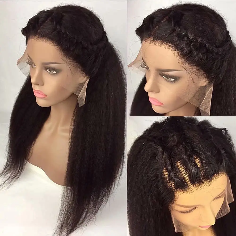 Черный кружевной передний al курчавый прямой женский парик Yaki Хорошее качество синтетические кружевные передние парики предварительно выщипанные мягкие женские Искусственные