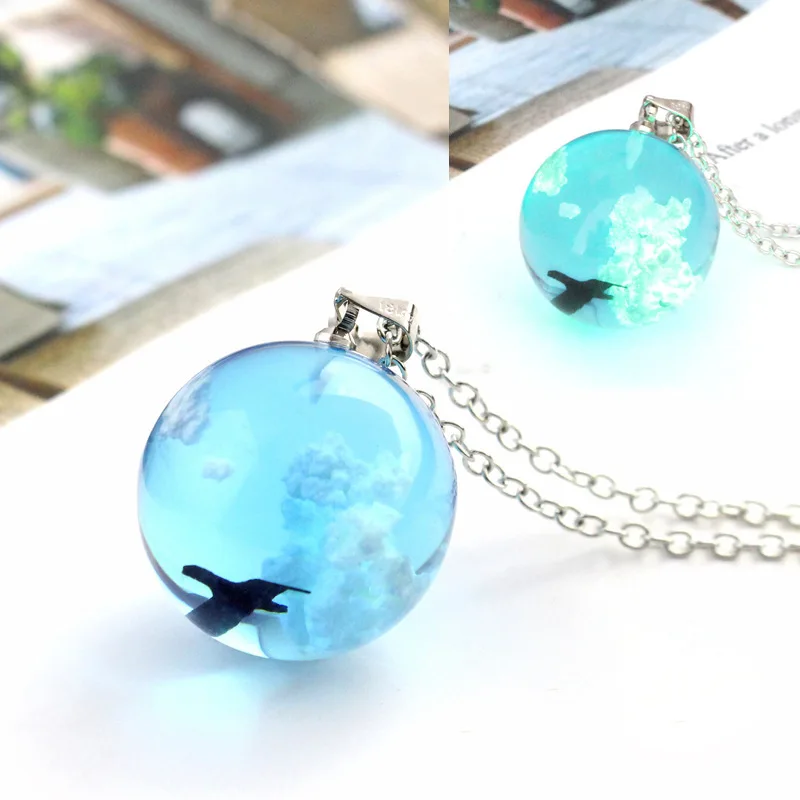 Ожерелье с подвеской в виде голубого неба и белого облака, женское ...