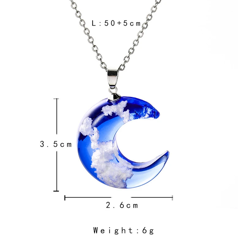 Ожерелье женское из смолы с подвеской-шариком, Луной и голубым небо...