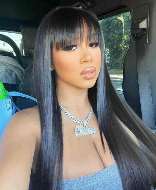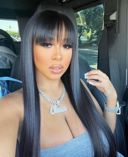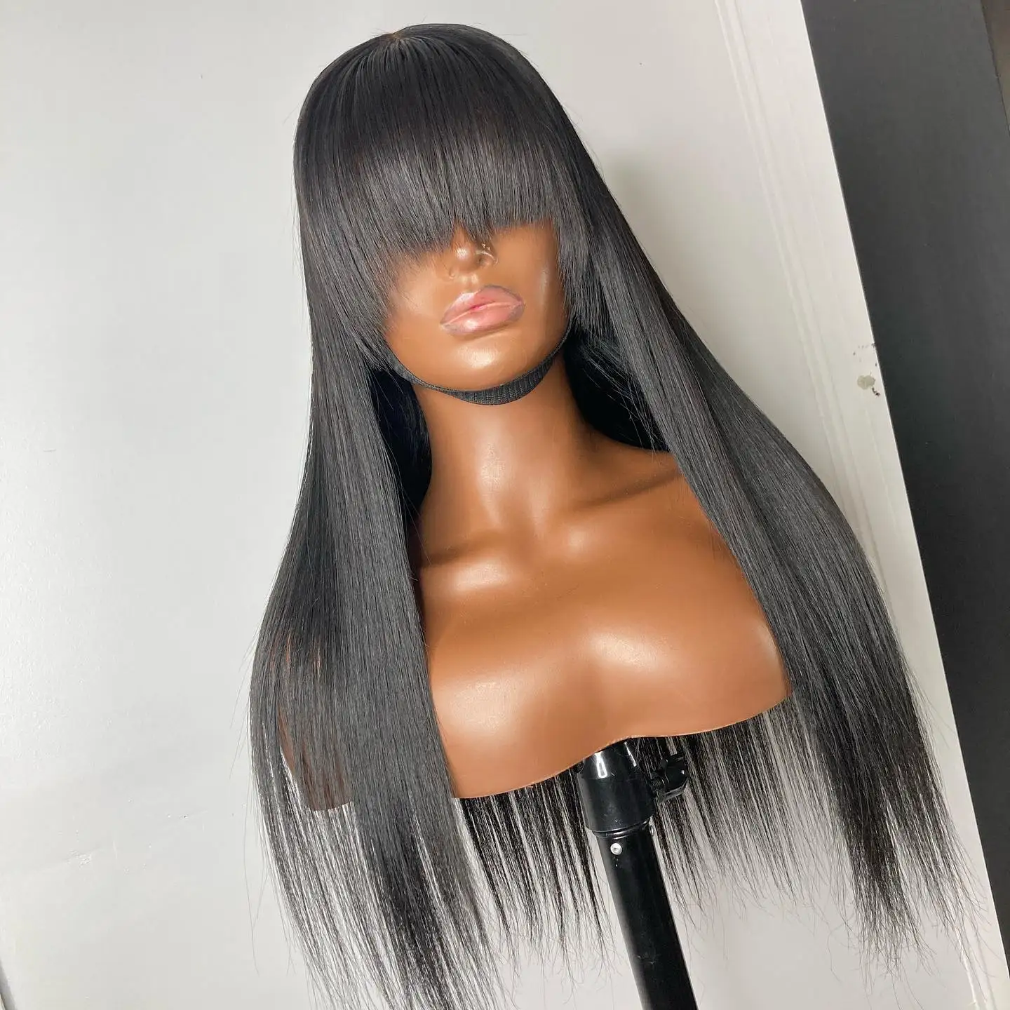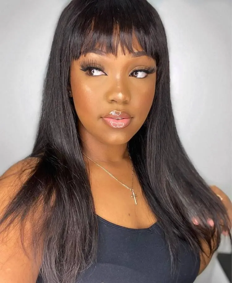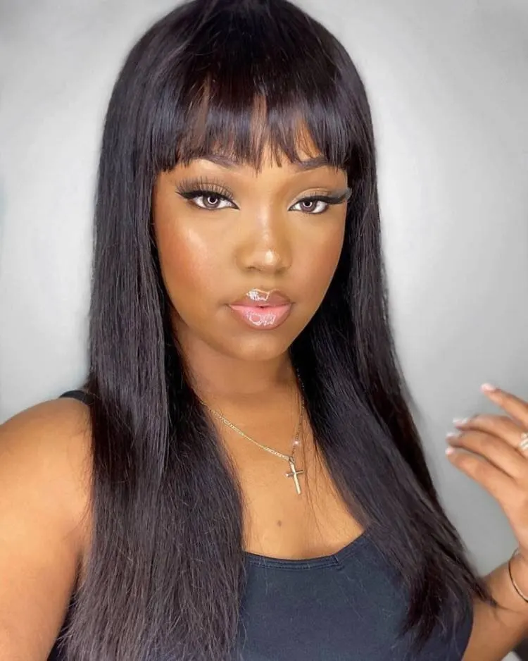 Прямой парик с челкой, парик из человеческих волос с челкой для женщин, бразильские волосы без клея, полностью машинное изготовление с челкой