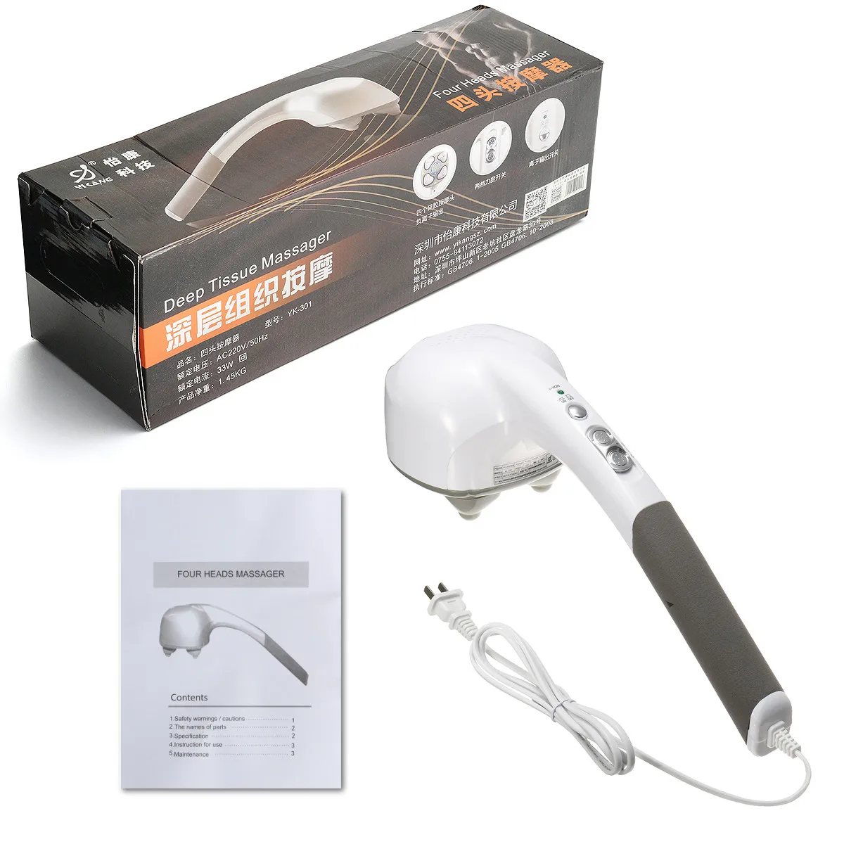 Посылка включает в себя:1 х ручной массажер4 x силиконовая Массажная головка1 Инструкция