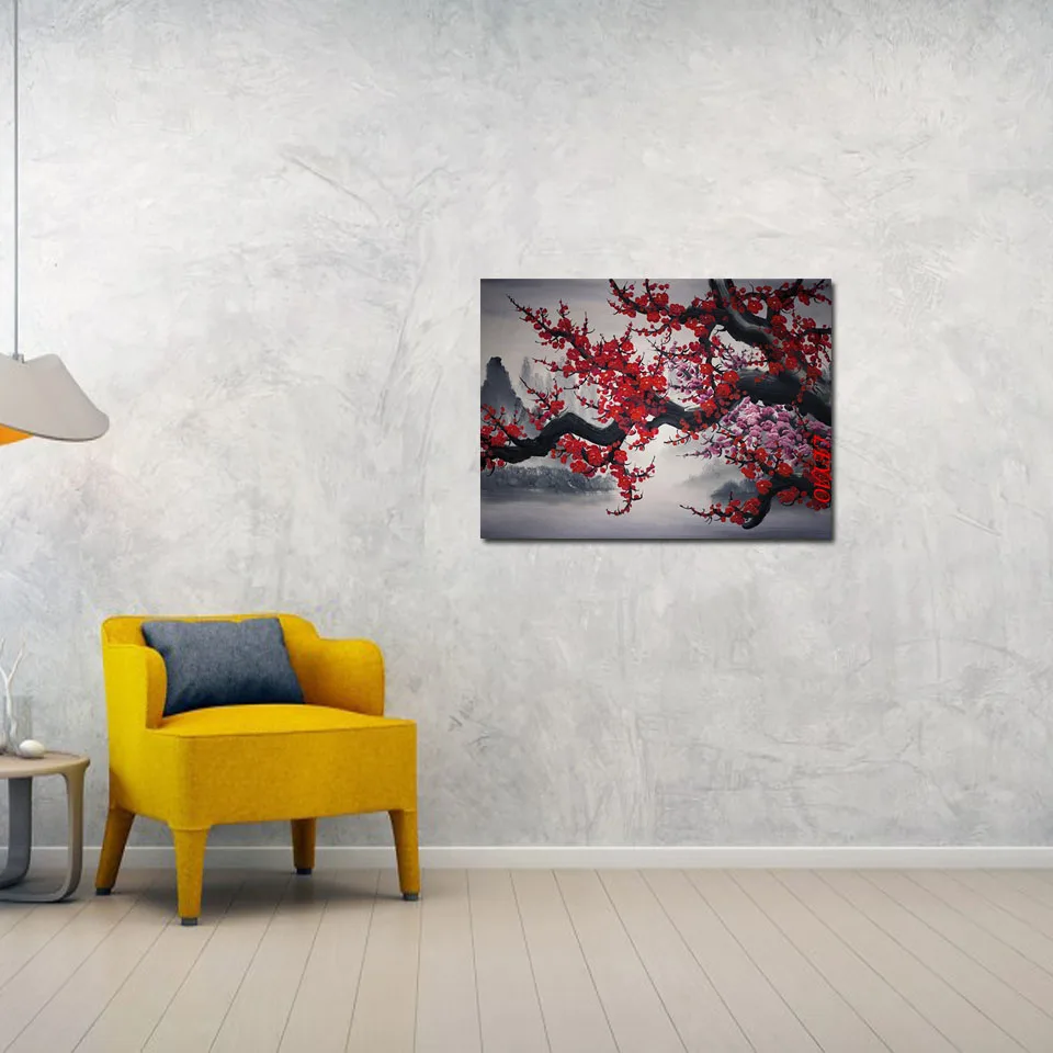 5D DIY Алмазная мозаика Алмазная вышивка вишневый цвет китайская живопись ручная Мозаика Цветок пейзажные наборы домашний декор