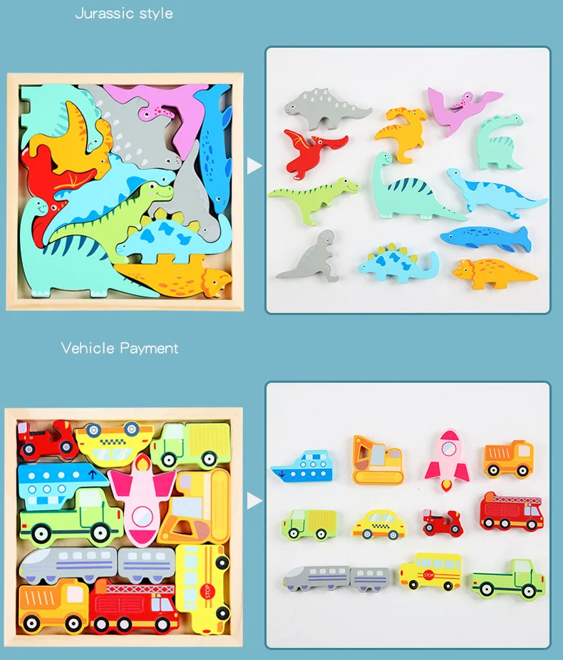 Деревянный мультяшный 3D-пазл Монтессори, когнитивные совпадения, и...