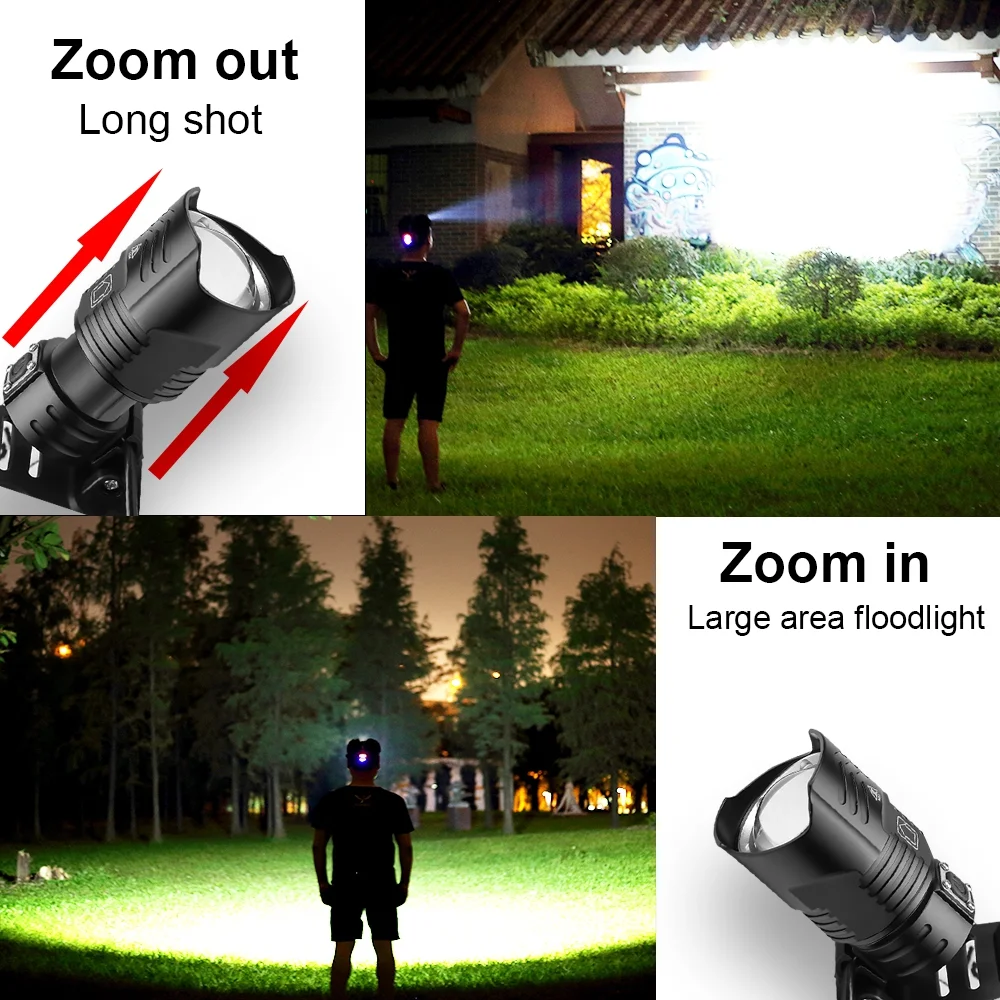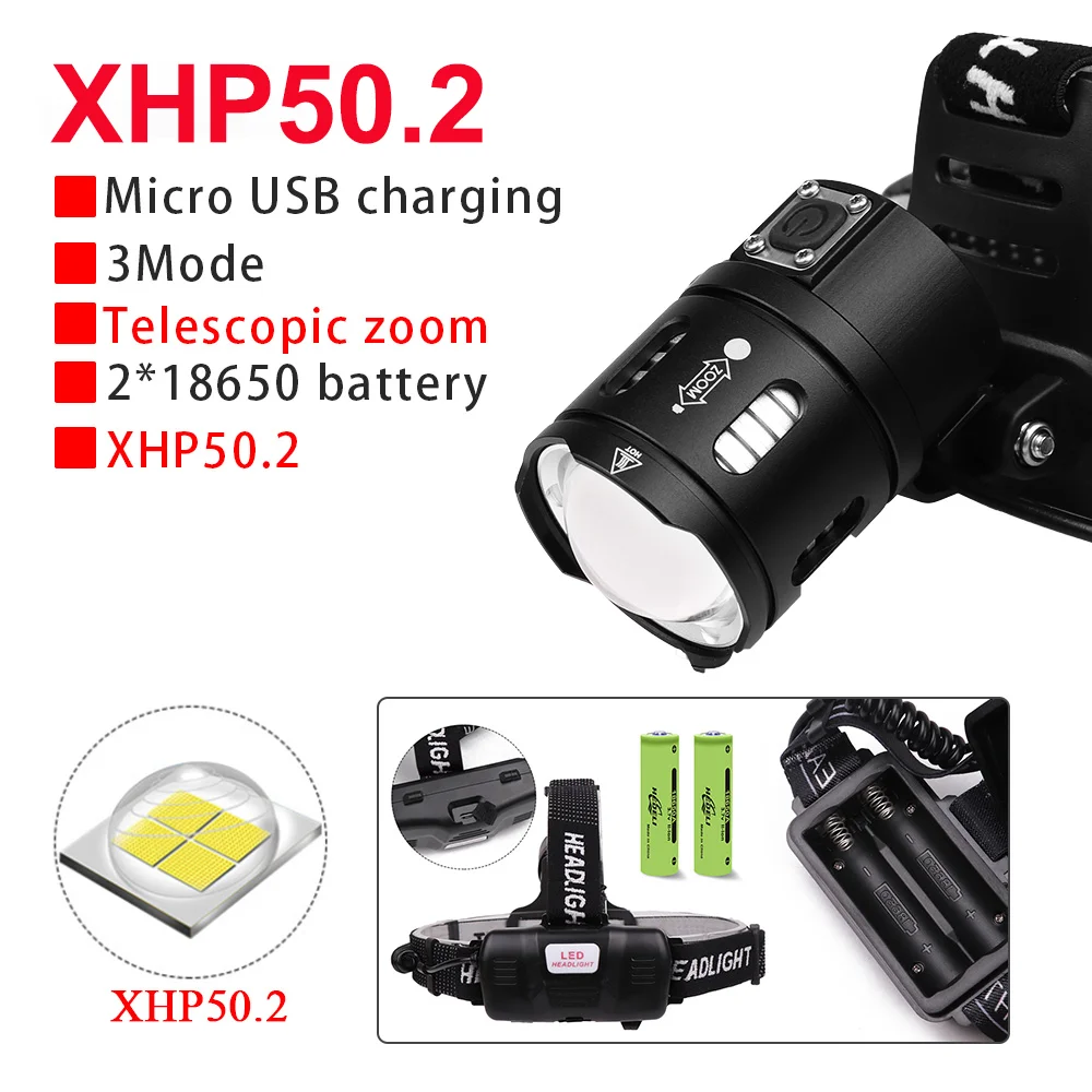 XHP50.2 параметрыБренд: PAWEINOUСветодиодный: XHP50.2Водонепроницаемость: IPX6Расстояние облучения: 500-800 мЦвет света: белыйМетод масштабирования: телескопический зумМатериал корпуса: прочный авиационный алюминийРежим: 3 режима: сильный светильник-низкий светильник-вспышкаВремя освещения: 4-8 часовПрименимый аккумулятор: 18650