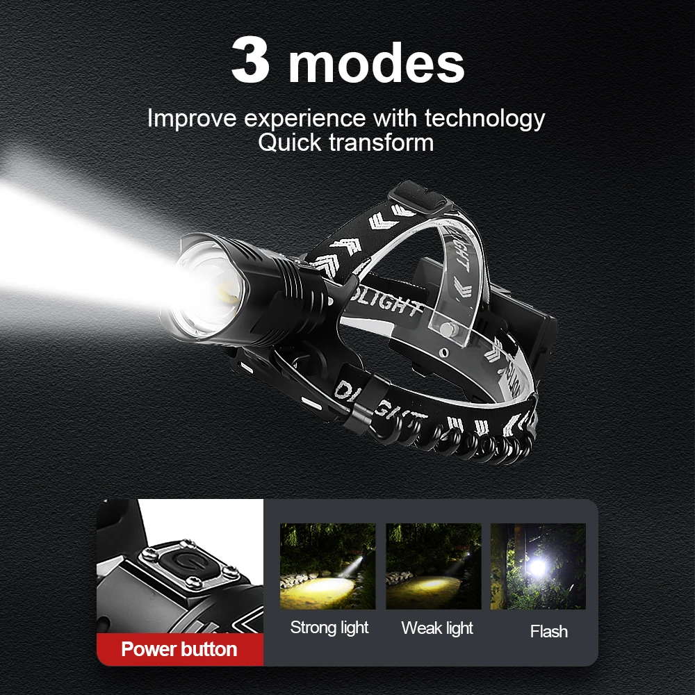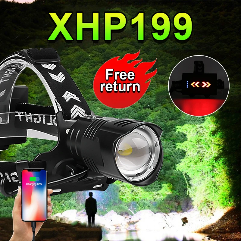 XHP199 супер яркий светодиодный налобный фонарь перезаряжаемый мощный налобный фонарь XHP90 светодиодная фара 18650 рыболовная голова фонарик фонарь