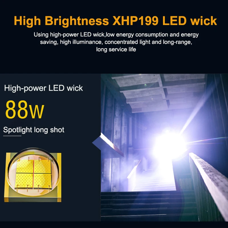 ▷Обновленный XHP199 светодиодный параметры фар❃Brand: PAWEINOU❃LED: XHP199❃Waterproof: IPX6Life срок службы: 3000000 часов❃Светящийся цвет: холодный белый светильник❃Метод масштабирования: телескопический зум❃Материал корпуса: прочный авиационный алюминийDistance расстояние облучения: 800-1500 мСветильник светодиодный светильник: 3 режима: сильный светильник-низкий светильник-вспышкаBattery Батарея: 3*18650 аккумуляторная батарея (поддержка ввода и вывода)Display мощность дисплея: 4 режима (100%-75%-50%-25%)❃Battery коробка: 2 режима (красный светильник-красный светильник свет, мигающий свет)Lighting Время освещения: 6-15 часов (можно использовать аккумулятор)Suitable подходит для любителей спорта на открытом воздухе для некоторых видов активного отдыха, таких как охота, Велоспорт, альпинизм, кемпинг и т. д.