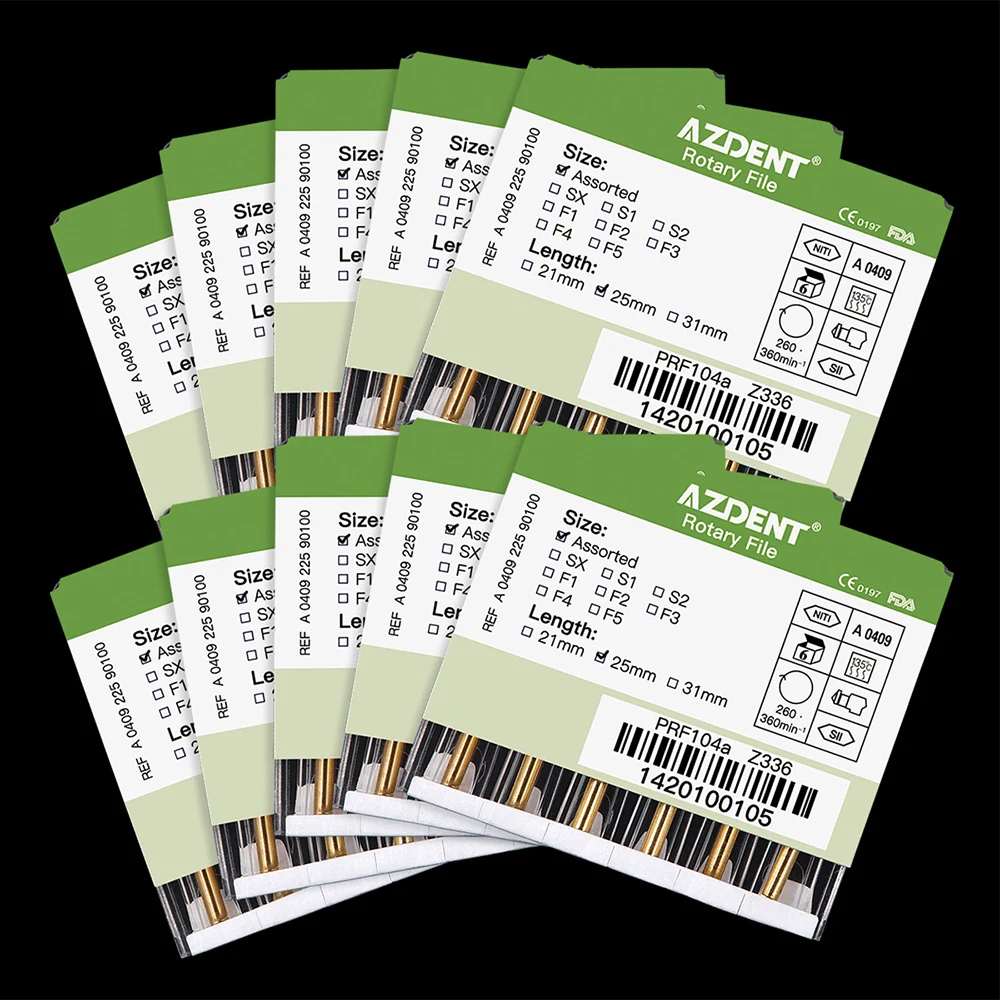 10 коробок AZDENT, стоматологические, с тепловой активацией, корневые напильники для канала, диаметром 25 мм, для двигателя, никель-титановый сплав, эндододонтические наконечники