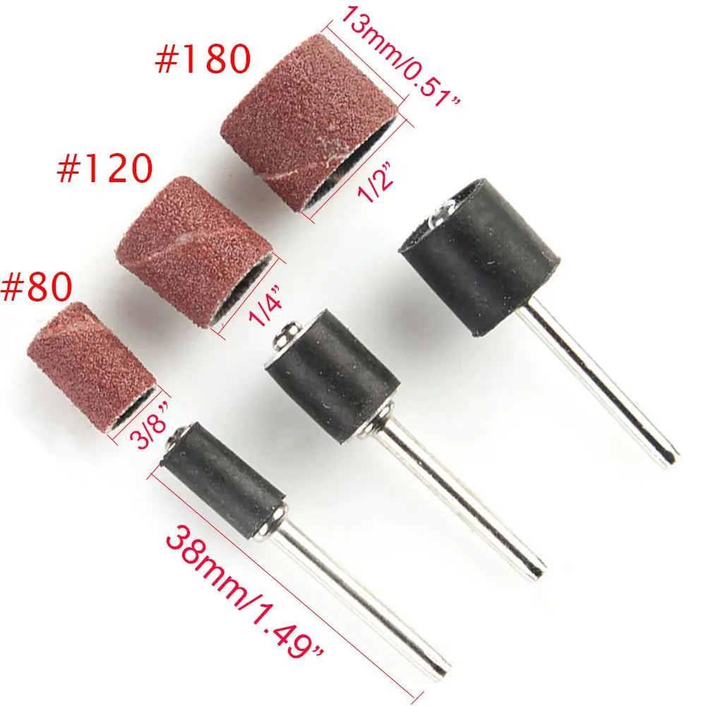 Набор шлифовальных барабанов #80 #120 #180 грит, шлифовальные ленты с шлифовальной насадкой, абразивные инструменты, вращающиеся инструменты