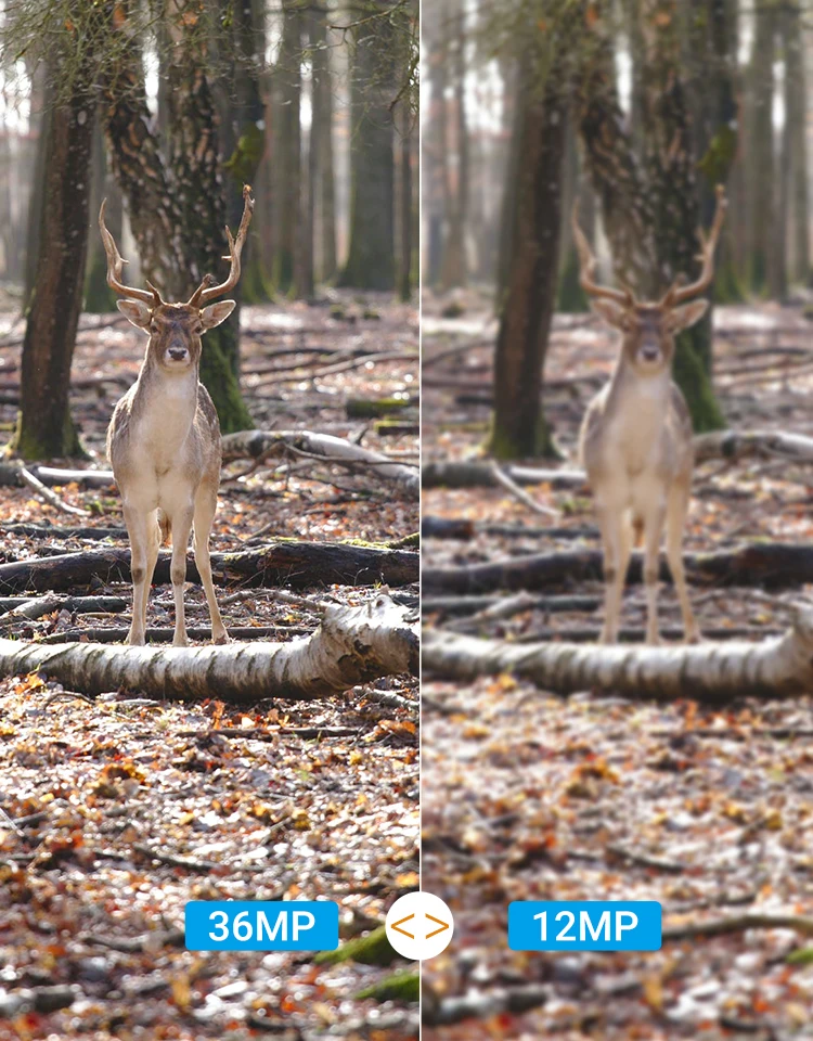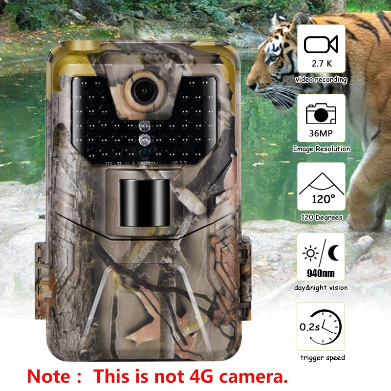 120 ° градусов 1520P видео и Макс 36MP фото: Следовая охотничья камера захватывает 8 мегапикселей четкие изображения и видео full HD 1520P, усовершенствованный и усовершенствованный чип делает фотографии видео более четкими и детализированными в дневное время (черно-белыми ночью). Широкоугольный объектив 120 °, никогда ничего не пропустите и не упустите ни один угол. Поддержка tf-карты до 64 Гб (не входит в комплект).