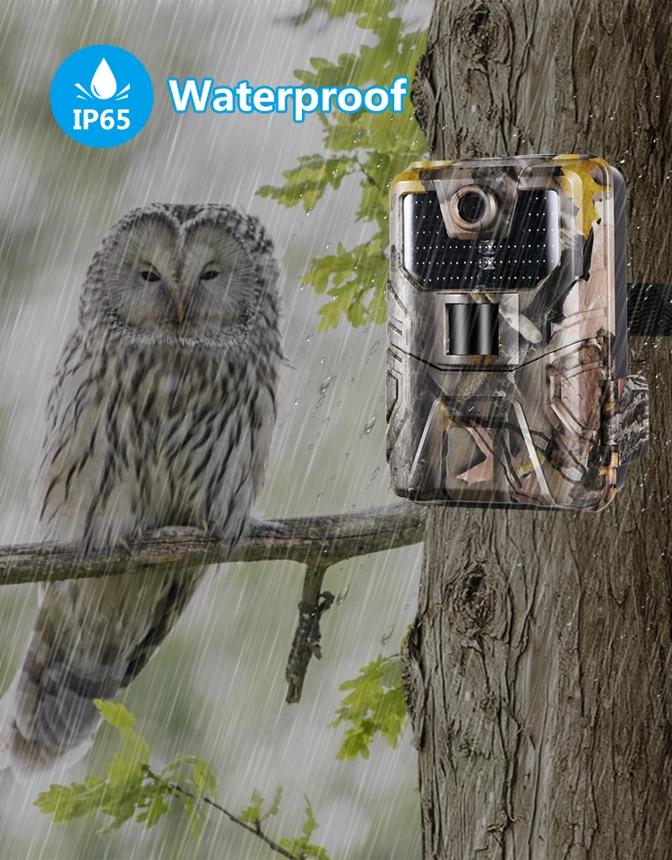 Водонепроницаемость: IP65Способ фиксации: ремень, крепление штативаНесколько фотографий на одном обнаружении: 1/3/6/9IP65 герметичный водонепроницаемый внешний вид, эффективно предотвращает попадание пыли и насекомых в дождевую воду.