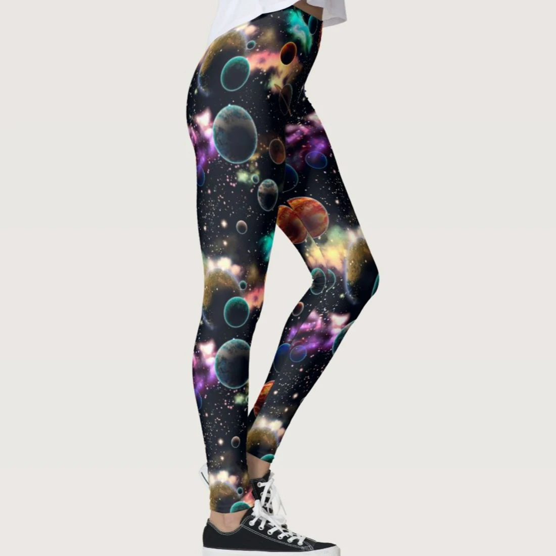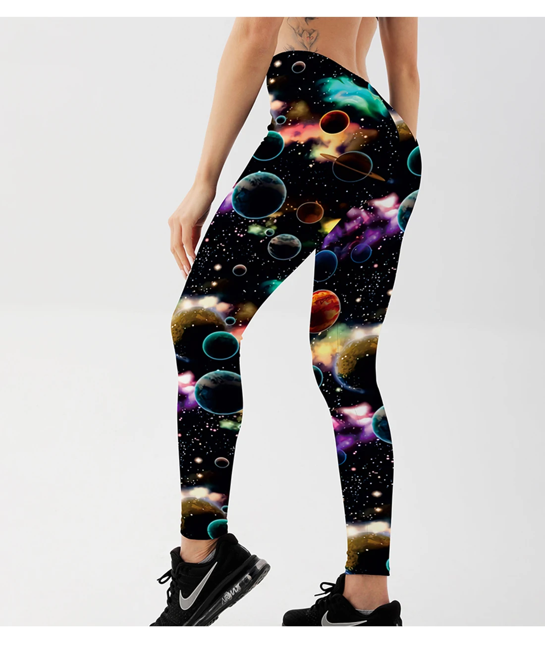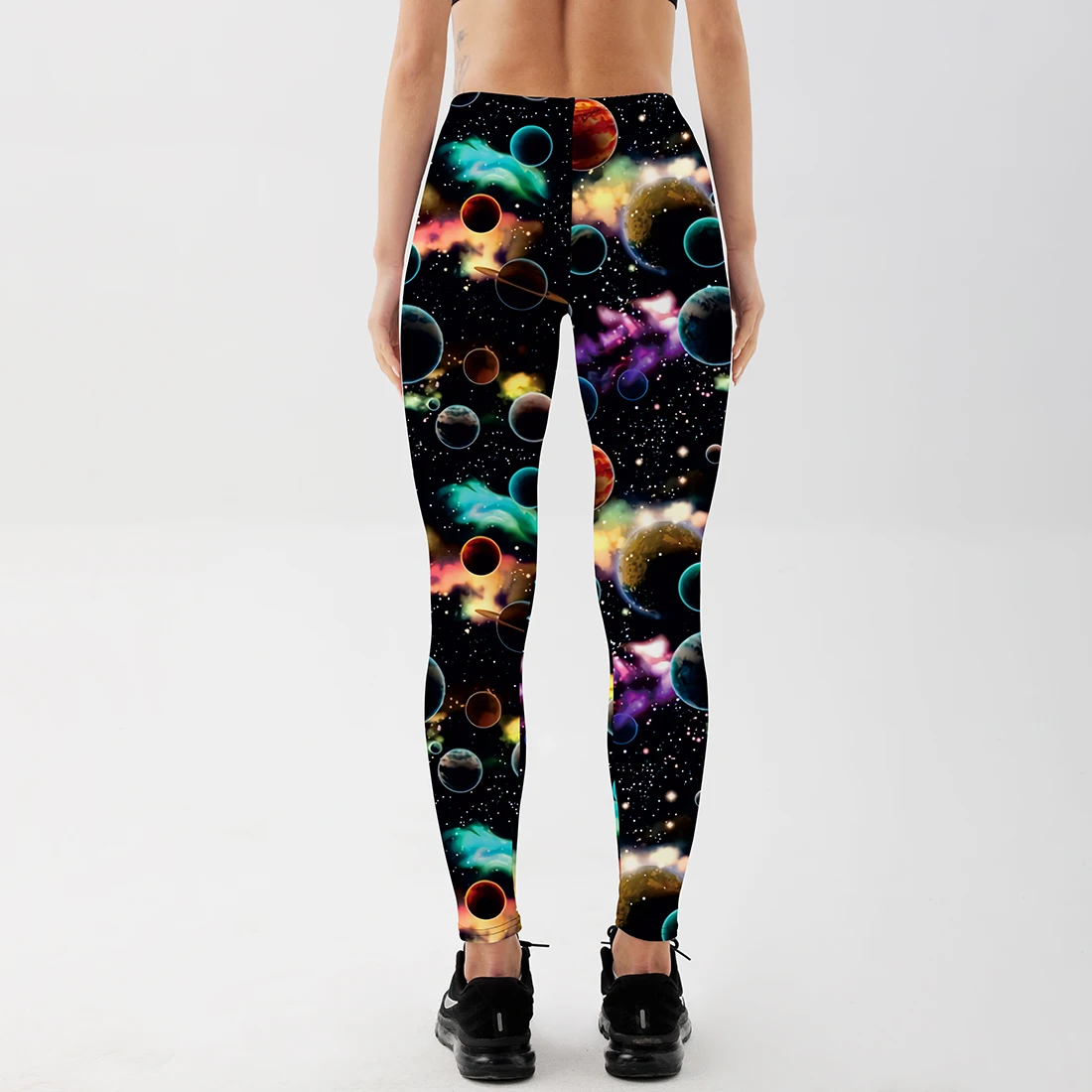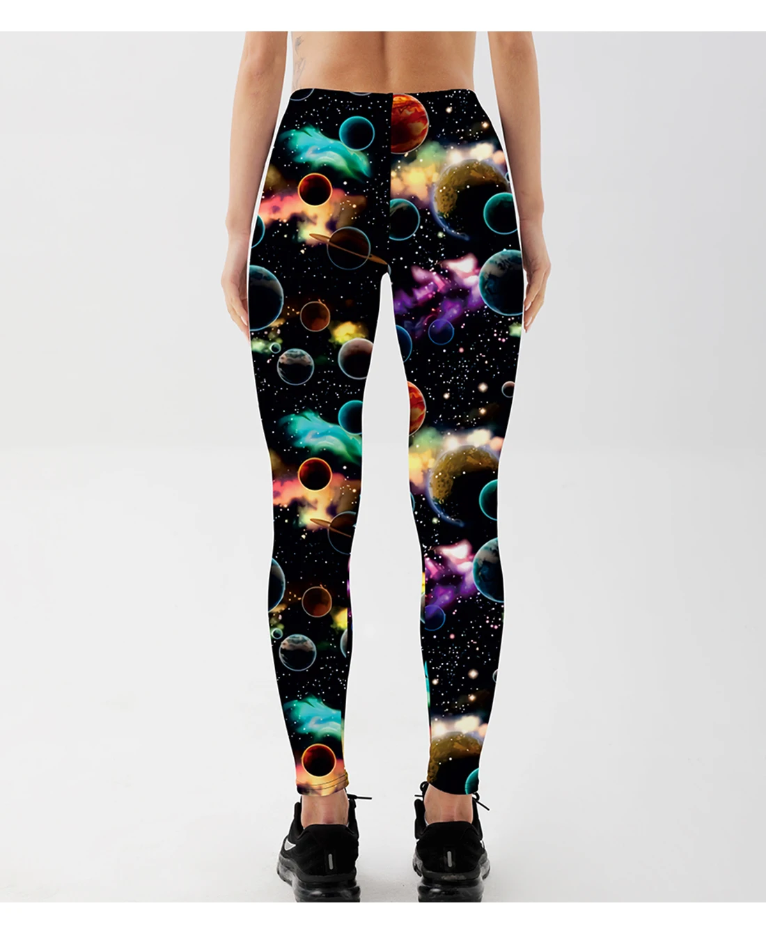 Цветные женские черные леггинсы Galaxy Space с принтом, повседневные женские длинные леггинсы для фитнеса и тренировок