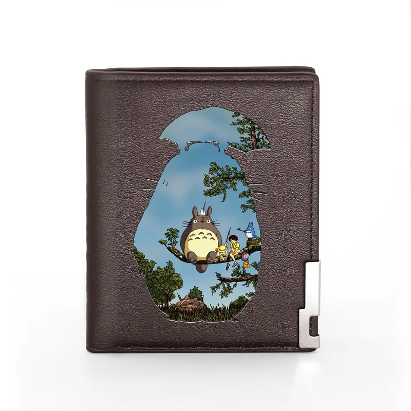 Новинка кожаный кошелек Мой сосед Тоторо модный мужской женский двойной тонкий держатель для кредитных картудостоверений личности Кошелек для денег короткие кошельки подарки