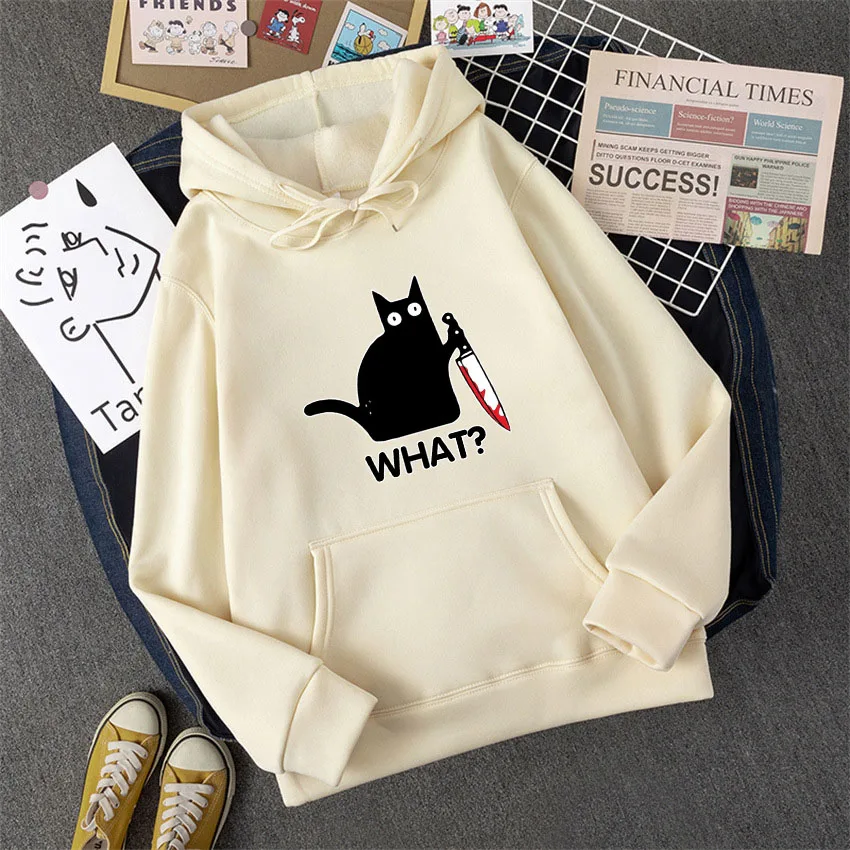 Толстовка с котом-убийцей и ножом, Свитшот в стиле хип-хоп, уличная одежда для манги, стиль Харадзюку, Женский пуловер