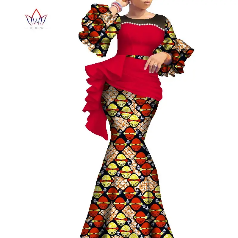 2021 длинные африканские платья для женщин Дашики Нигерия традиционное свадебное платье Базен риче воск жемчужное платье рукав-фонарик WY7769