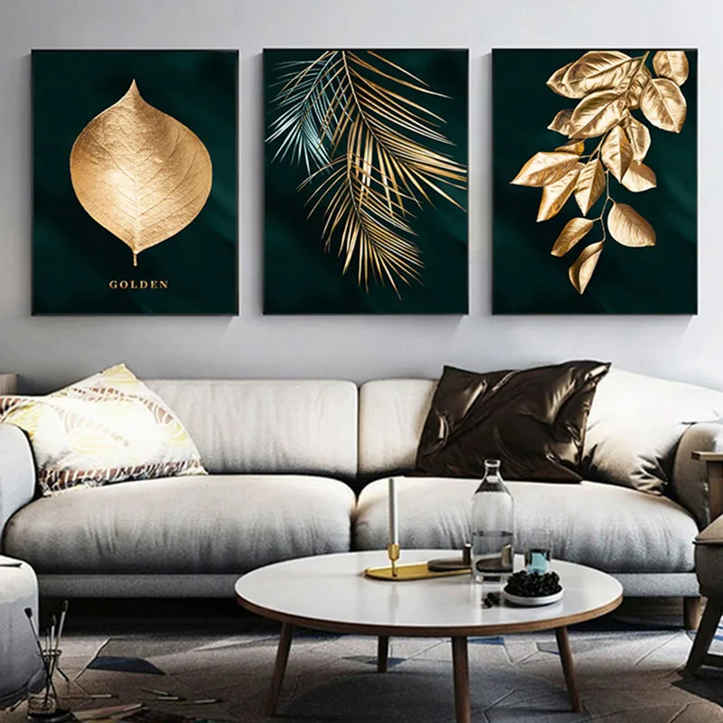 Wall Art черный плакат Холст Картина золото картины листьев домашне...