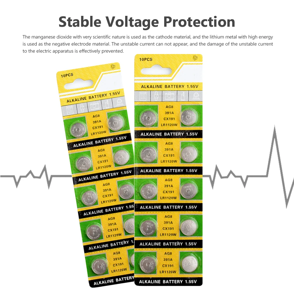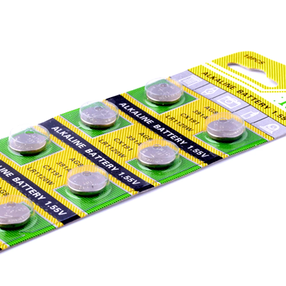 10-100 шт., щелочные кнопочные батарейки AG8 1,55 191 381 391B 391 D381 GP381 для часов