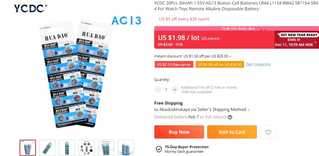 Посылка в комплекте10 батарей AG4