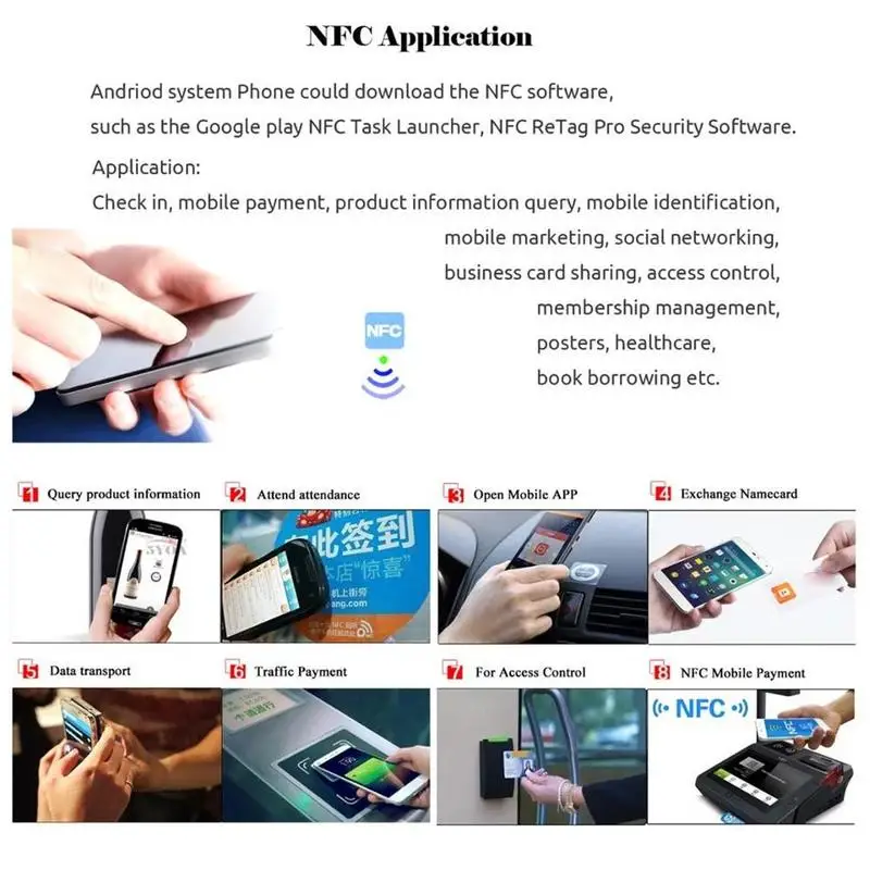 Состояние: новая, ранее не использованная, не открытая, неповрежденная продукция в оригинальной упаковке (в случае, когда предполагается наличие такой упаковки).Совместимость: Поддержка 13,56 МГц RFID и NFC IC reader/writer, например: Acr122u reader/writer, поддержка смартфонов с функцией NFC.Применение: проверка, мобильный платеж, запрос информации о продукте, Мобильная идентификация, мобильный маркетинг, социальные сети, обмен бизнес-картами, контроль доступа, управление членством, плакаты, здравоохранение, книжные займы и т. д.Чип: NFC215Совместимая модель: 100Money-NFC215Полезная емкость: 504 байтаЧастота: 13,56 МГцТип крепления: чтение и запись R/WРасстояние чтения и письма: от 1 до 5 смВремя чтения и письма: от 1 до 2 мсРабочая температура: от-20 до 55 градусов, влажность 90% раз стирания: Более 100000 разХранение данных: более 10 лет время чтения: 100000 раз диаметр: 25 ммЦвет: белыйМатериал: ПВХРазмер: диаметр: около 25 ммПосылка:10/100 * NFC карты