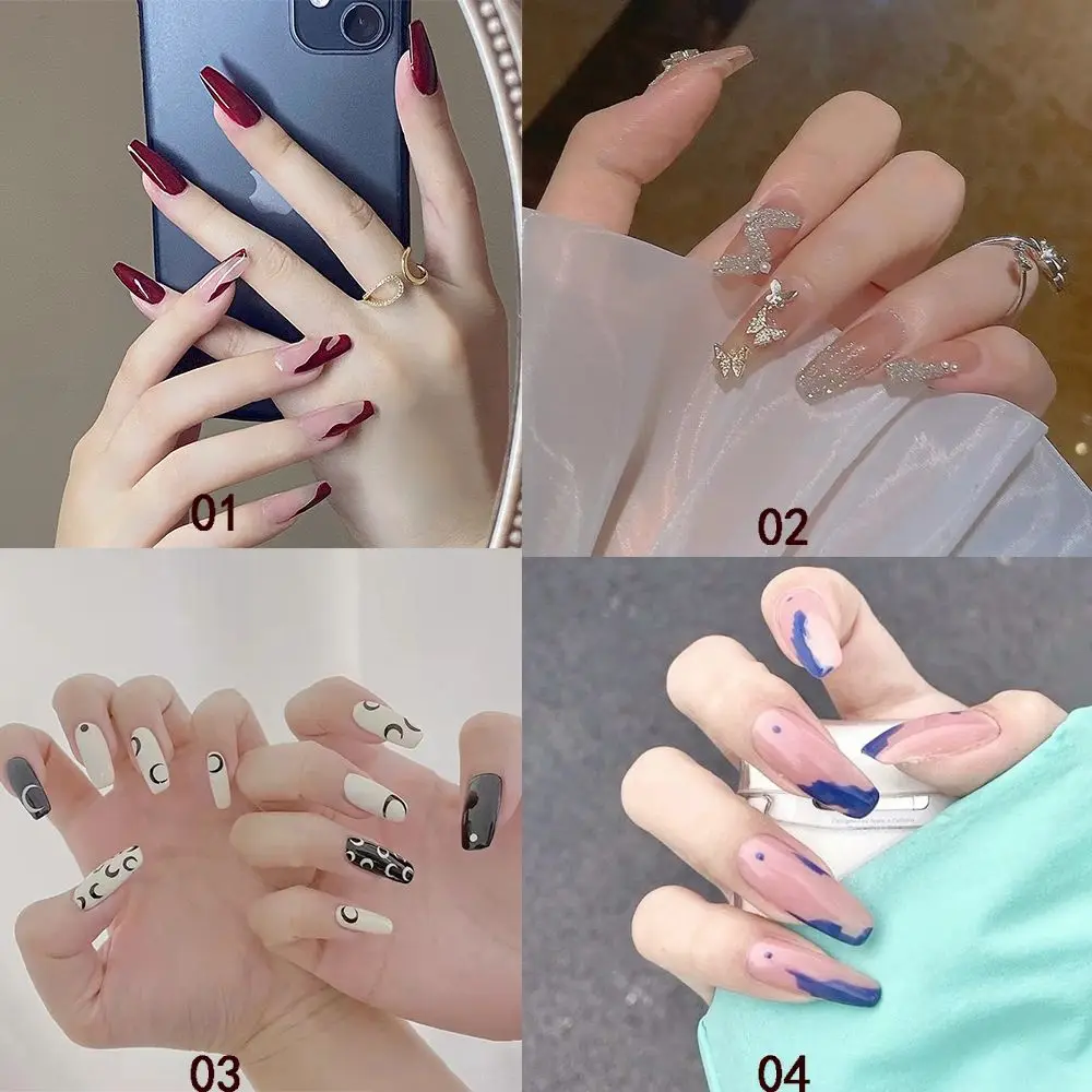 24 шт. блестящие съемные накладные ногти Длинные накладные ногти ба...