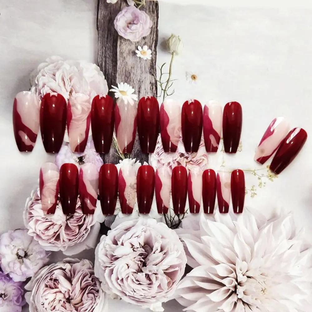 24 шт. Длинные накладные ногти балерины красно-коричневый дизайн Ис...